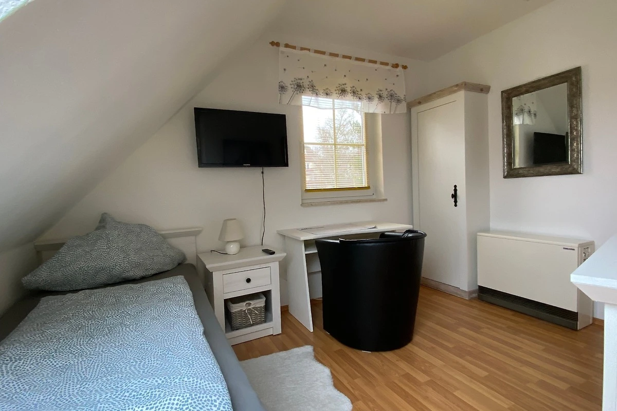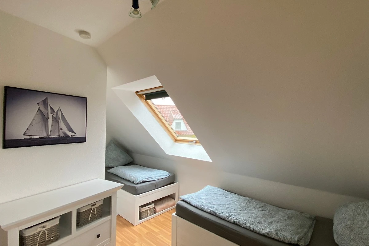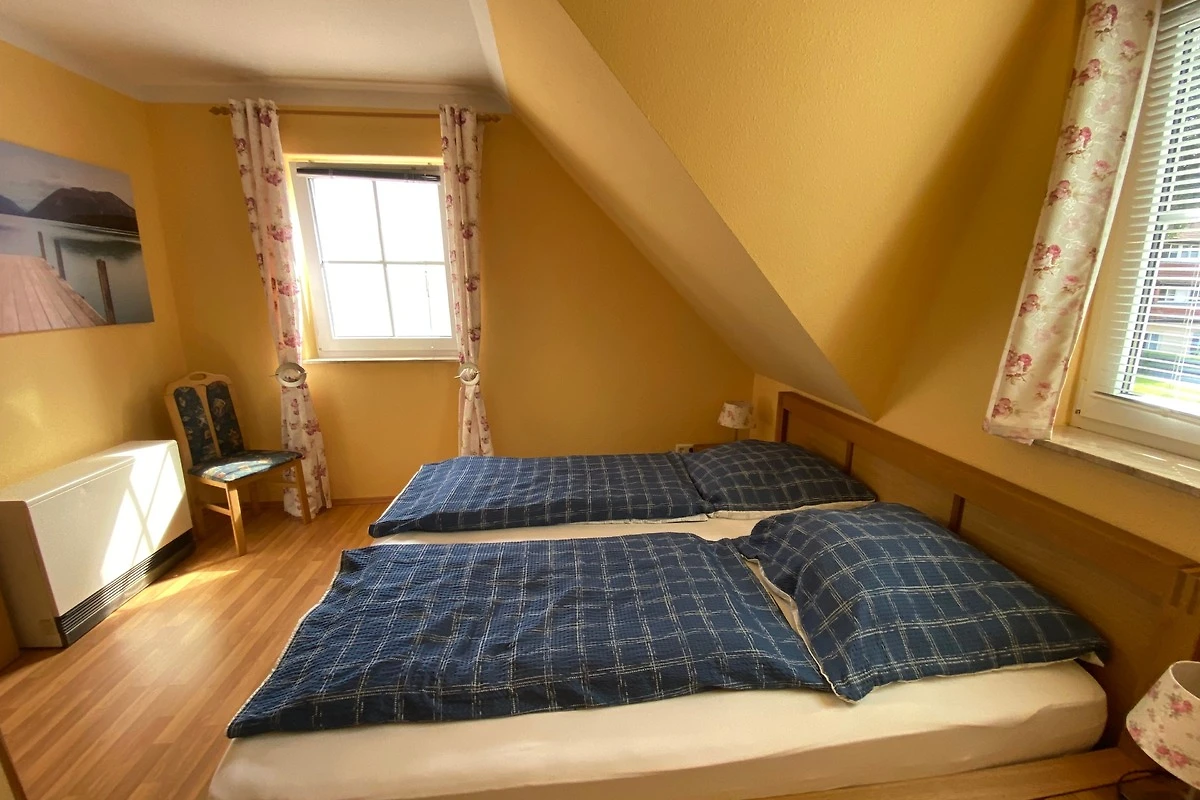 Im EG befindet sich ein Duschbad mit Aussenfenster. Im OG befinden sich zwei gemütlich eingerichtete Schlafzimmer, eines mit einem Doppelbett und eines mit zwei Einzelbetten, sowie ein Gäste-WC.