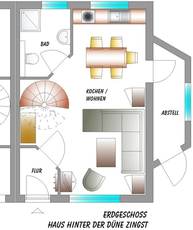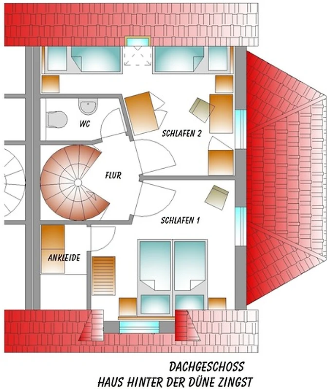 Die Doppelhaushälfte mit einer Terrasse ,liegt direkt hinter den Dünen des schönsten Strandes der Ostsee und bietet auf einer Wohnfläche von ca.75m² ausreichend Platz für 4 Personen und ein Kleinkind.