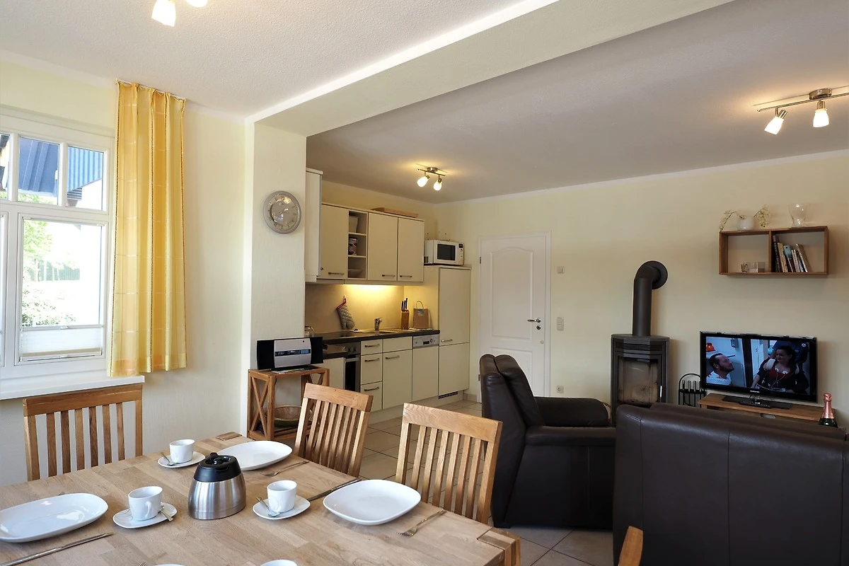 Sehr ruhige Lage, nicht weit vom Strand. 3 gute und große Schlafzimmer, 2 große Bäder und riesige Sauna. Wohn- Esszimmer Küche alles da was man braucht, allerdings wird's es für 6 Personen etwas eng. Die Terrasse sieht etwas ungemütlich aus von der Lage her. Fußbodenheizung und Kaminofen bringen wohlige Wärme. Waschmaschine vorhanden. Fahrradschuppen ist groß genug. Die Wände könnten einen neuen Anstrich vertragen sonst haben wir nichts zu bemängeln. Wir waren zu zweit in der Winterzeit und es hat alles gepasst. Würden es wieder buchen. Preisleistung in dieser Jahreszeit war in Ordnung.