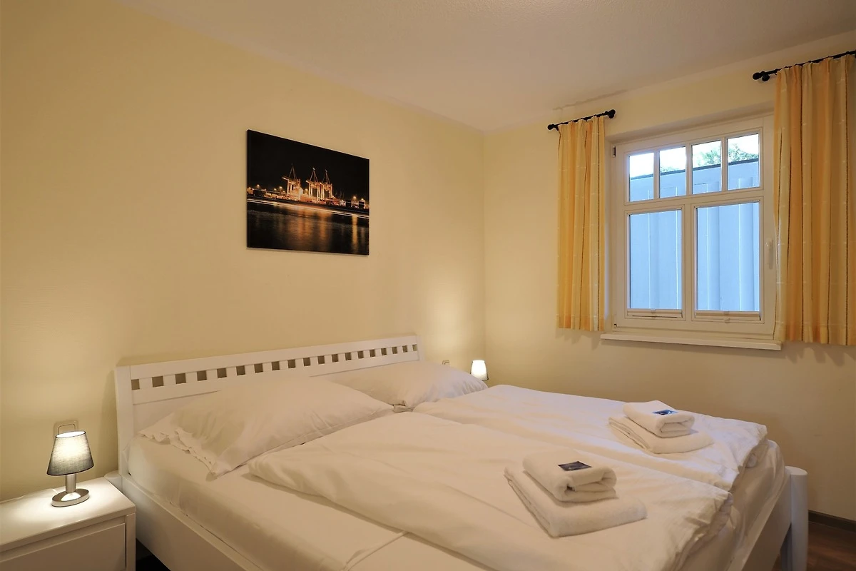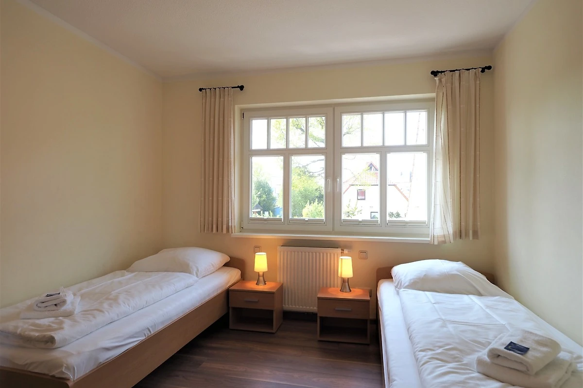 - 1 Schlafzimmer mit 2 Einzelbetten (0,90x2,00m) Federkernmatratzen mit verstellbaren Lattenrosten
