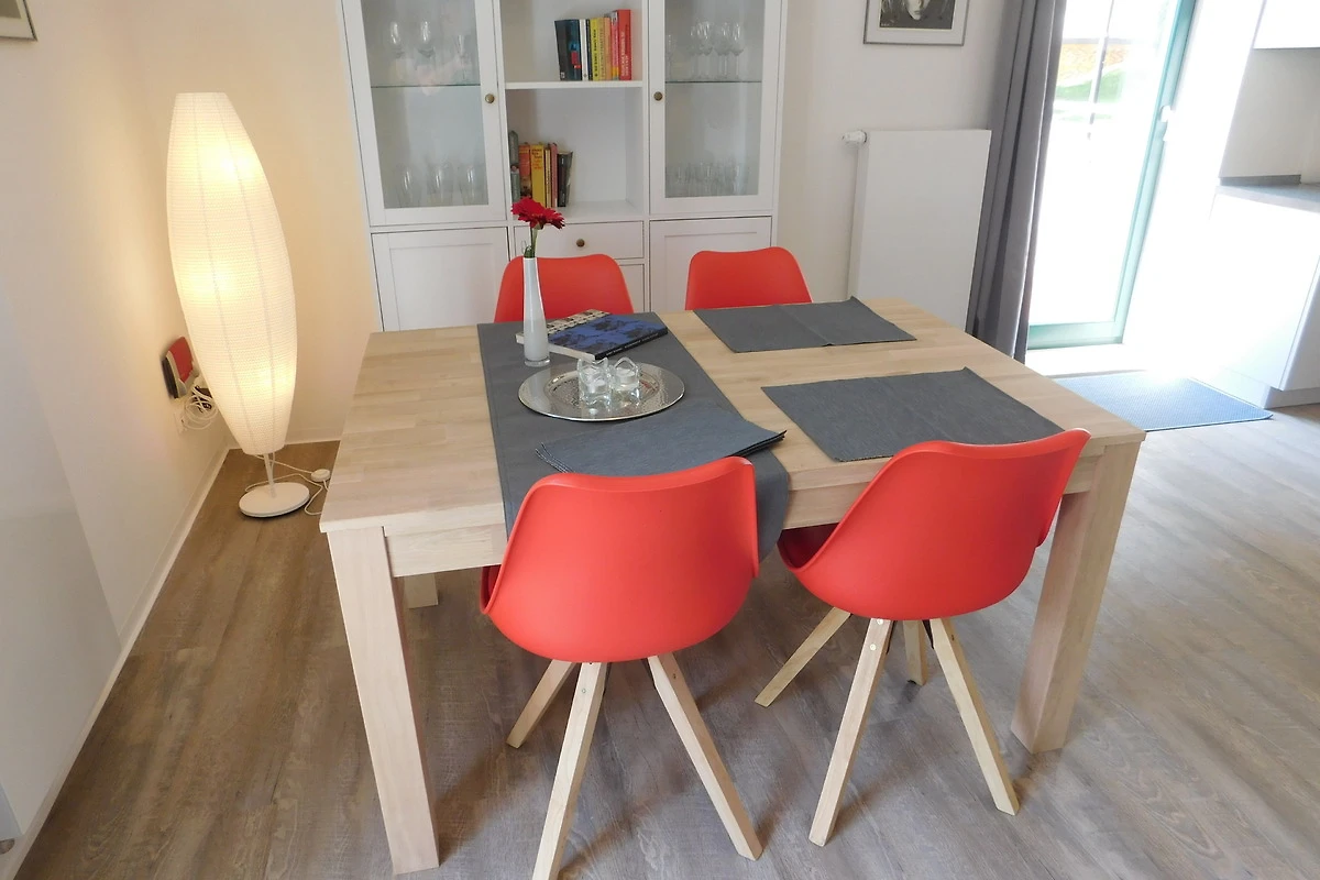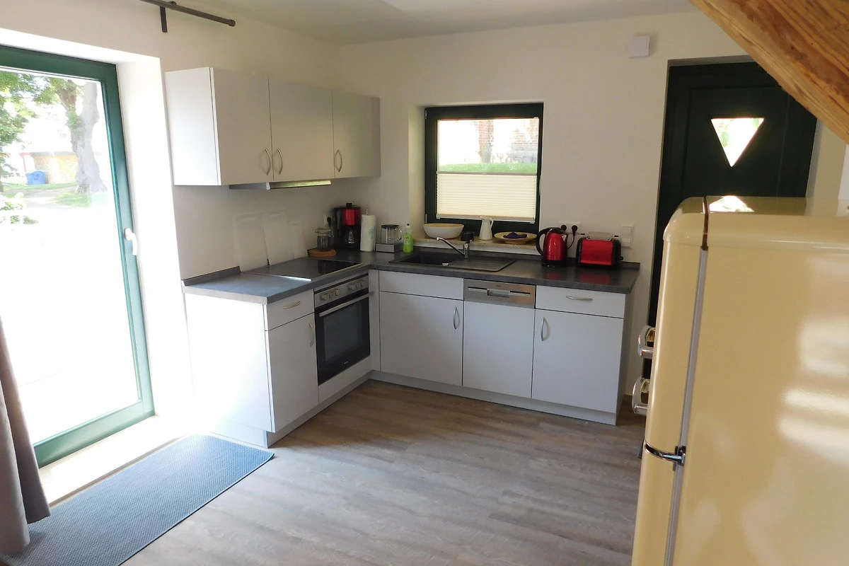 Aufbettungen für Kinder sind möglich. Beide Ferienhäuser sind nahezu identisch eingerichtet und Nichtraucher-Wohnbereiche. Im Erdgeschoss befindet sich eine Wohnküche mit gemütlicher Sitzecke, einem Ess- oder Arbeitstisch und dem Küchenbereich. Von hier aus haben Sie Zugang zu einer ca. 12 qm grossen Terrasse, die durch die Lage der Gebäude einen interessanten Blick auf das Kleinstadtflair erlaubt.