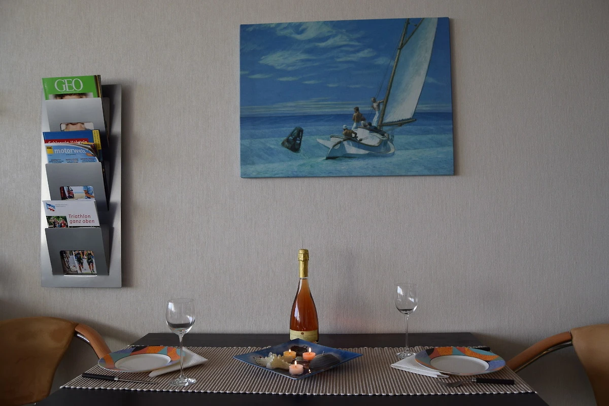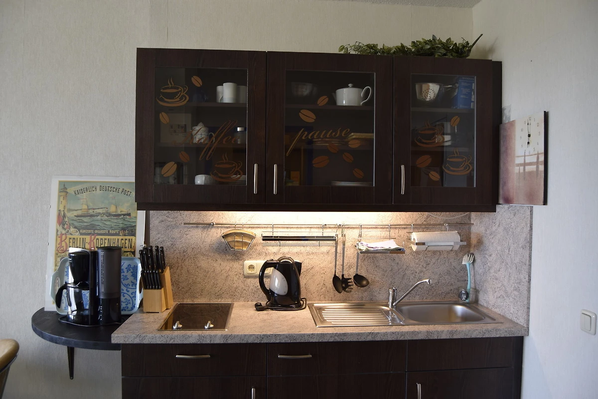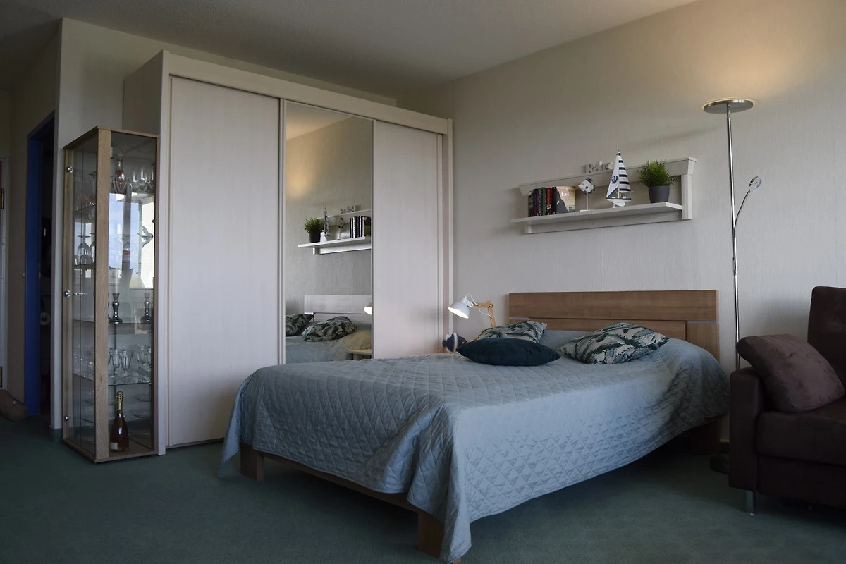 Auf dem Balkon mit gemütlicher Essecke können Sie Ihr Frühstück bei einem wunderschönen Weitblick auf die Ostsee, über Kalifornien und den Schönberger Strand geniessen. Das Appartement verfügt über einen kombinierten Wohn-/Schlafbereich mit neuem Doppelbett (1,40 x 2,00m), zwei Sofas, eine Küchenzeile mit Essbereich sowie ein Duschbad.