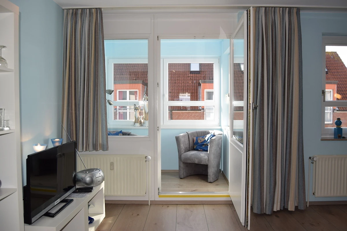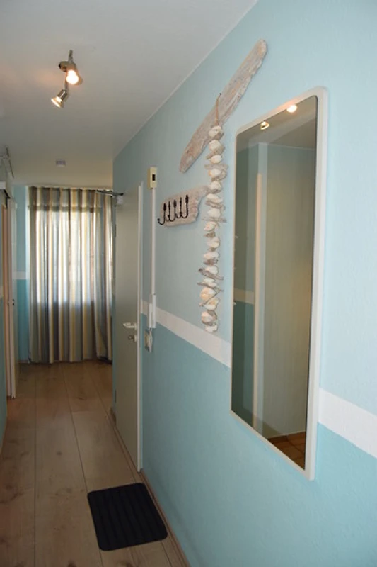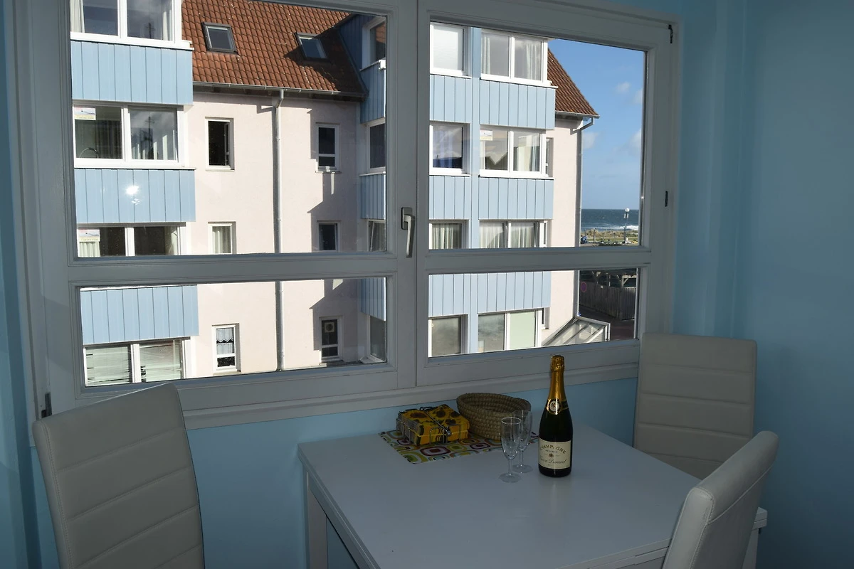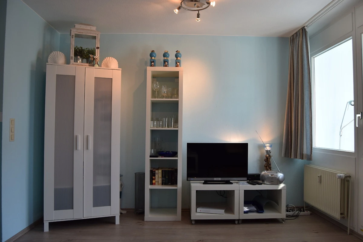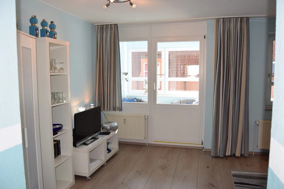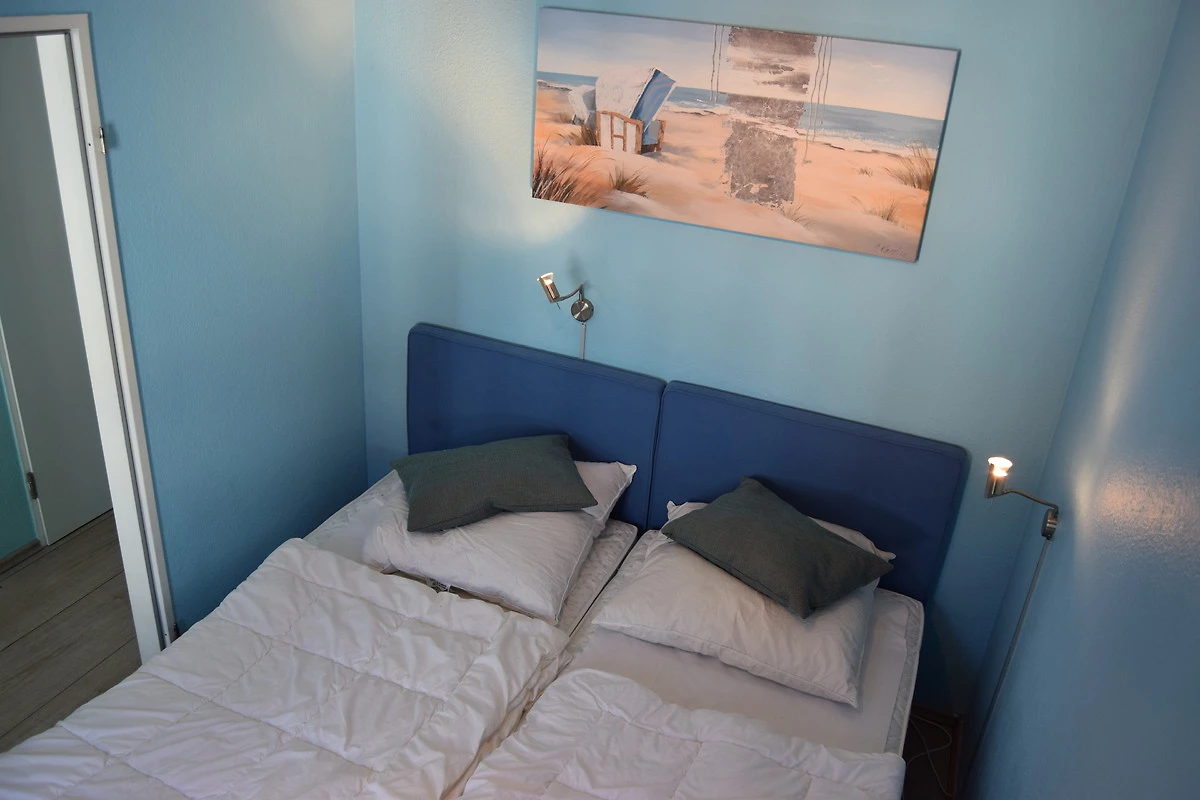 Auf 45 qm bietet unsere Ferienwohnung "Nautic" genügend Platz und Rückzugsmöglichkeiten für einen erholsamen Urlaub, ob für Eltern mit bis zu einem Kind oder auch für drei Erwachsene. Sie ist mit einem separaten Schlafzimmer (7,17m² - hochwertiges Boxspringbett mit den Massen 1.80 x 2.00 m) ausgestattet und verfügt über ein kleines Badezimmer (2,65m²). Ausserdem über eine Küche und einen kombinierten Wohn-/ Schlafraum (15,52m²). Hier besteht die Möglichkeit das Schlafsofa (1.60 x 2.00 m) auszuziehen und gemütliche Stunden in der zweiten verglasten Loggia zu verbringen. WLAN und WaipuTV stehen ebenfalls zur Verfügung. Ausserdem steht Ihnen ein fest reservierter PKW-Stellplatz (Nr. 10) zur Verfügung. Bitte beachten Sie, dass das Carport sehr eng ist (2,17 m breit, 2,20 m hoch, 3,66 m lang). Im Gebäude befindet sich ein Gemeinschaftsraum. Hier stehen Ihnen eine Waschmaschine und ein Trockner (Münzgeräte) zur Verfügung. Ihre Fahrräder, Strandutensilien etc. können Sie im abschliessbaren Gemeinschaftsraum unterbringen (je nach Verfügbarkeit).