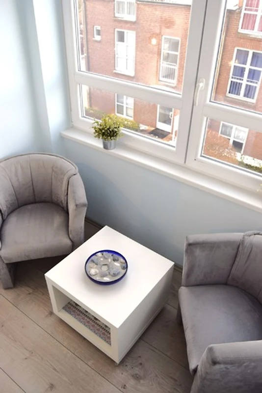 Im Wohnzimmer steht Ihnen ein Smart TV mit WAIPU TV für gemütliche Abende zur Verfügung. Ob Couch oder Relaxsessel - hier findet jeder seinen Lieblingsplatz. Die verglaste Loggia zur Landseite bietet auch jeder Leseratte einen gemütlichen Rückzug.