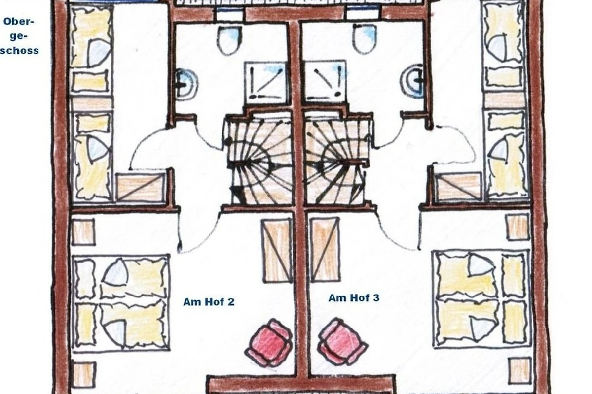 Ein Duschbad und ein separates WC befinden sich im Erdgeschoss. In der 1. Etage befindet sich das 2. Duschbad mit WC.
