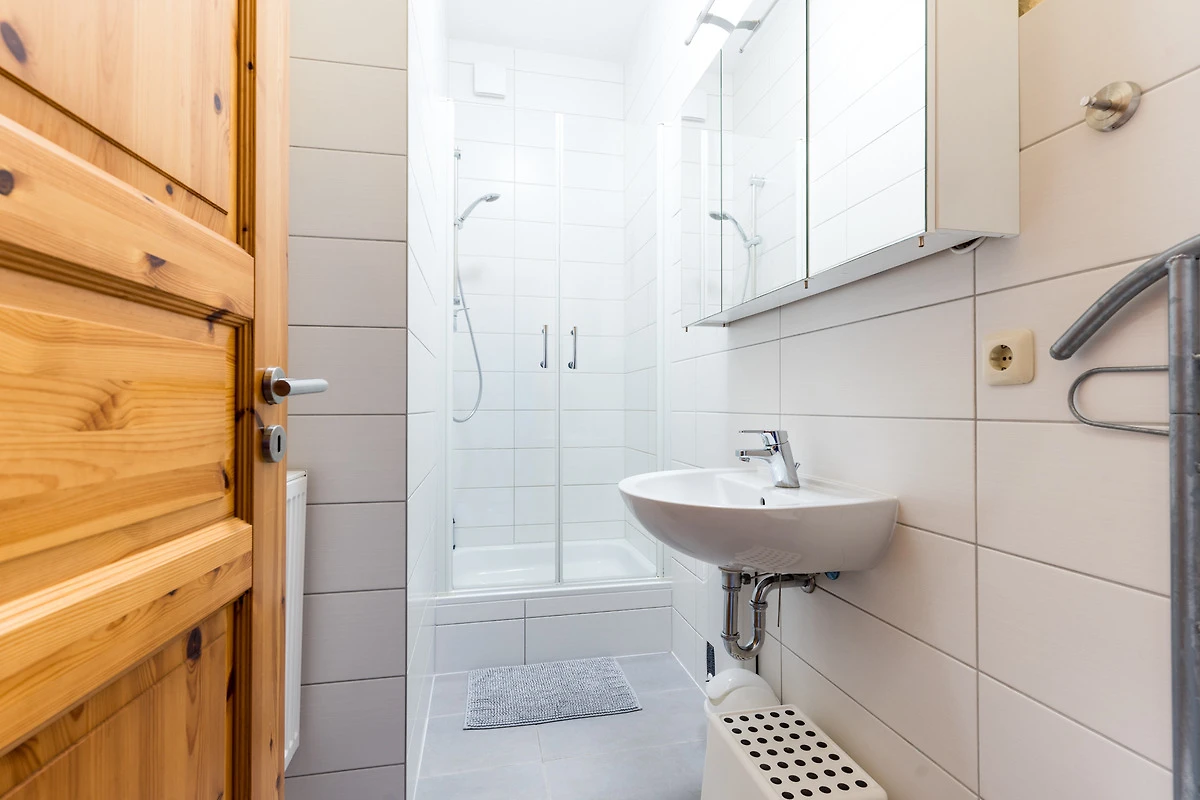 Es gibt ausserdem ein Duschbad und ein separates WC