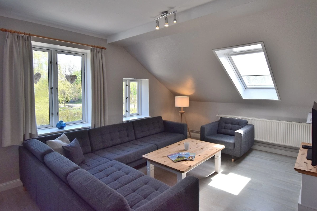 Im lichtdurchfluteten Wohn-Ess-Zimmer erwarten Sie ein Flachbid-TV mit DVD-Player, ein Radio und ein CD-Player.