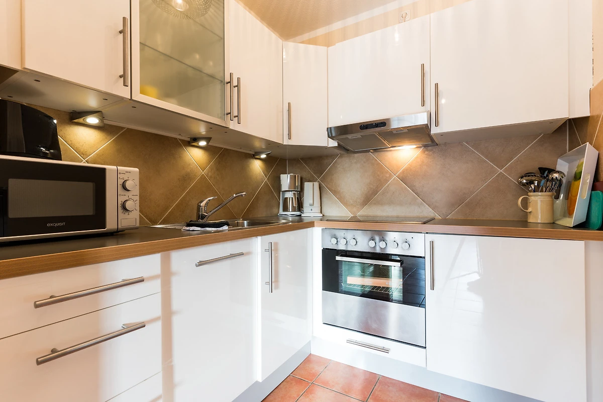 Die offene Küche ist komplett ausgestattet mit allen Geräten und Utensilien, die Sie benötigen.