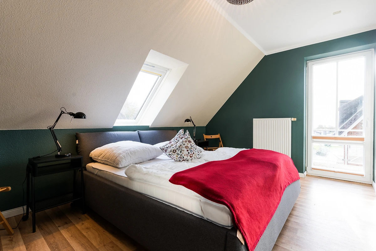 Ein Schlafzimmer mit 1 Doppelbett ein weiteres Schlafzimmer mit 2 Einzelbetten im gemütlichen Spitzboden.