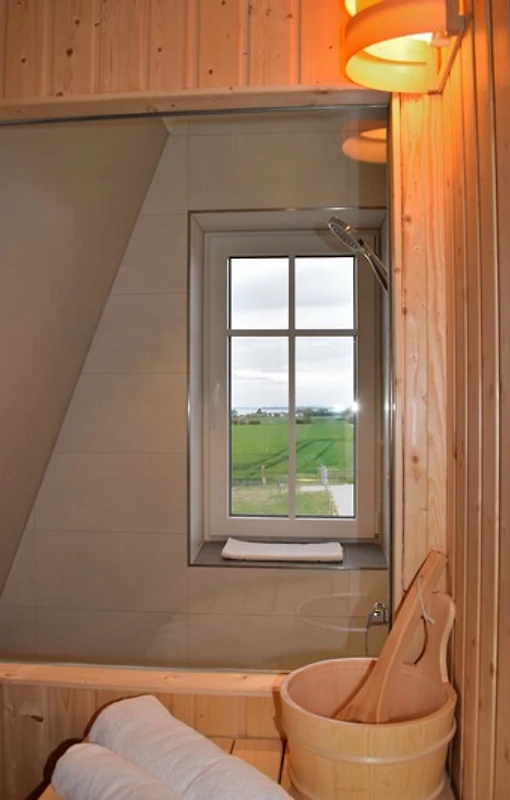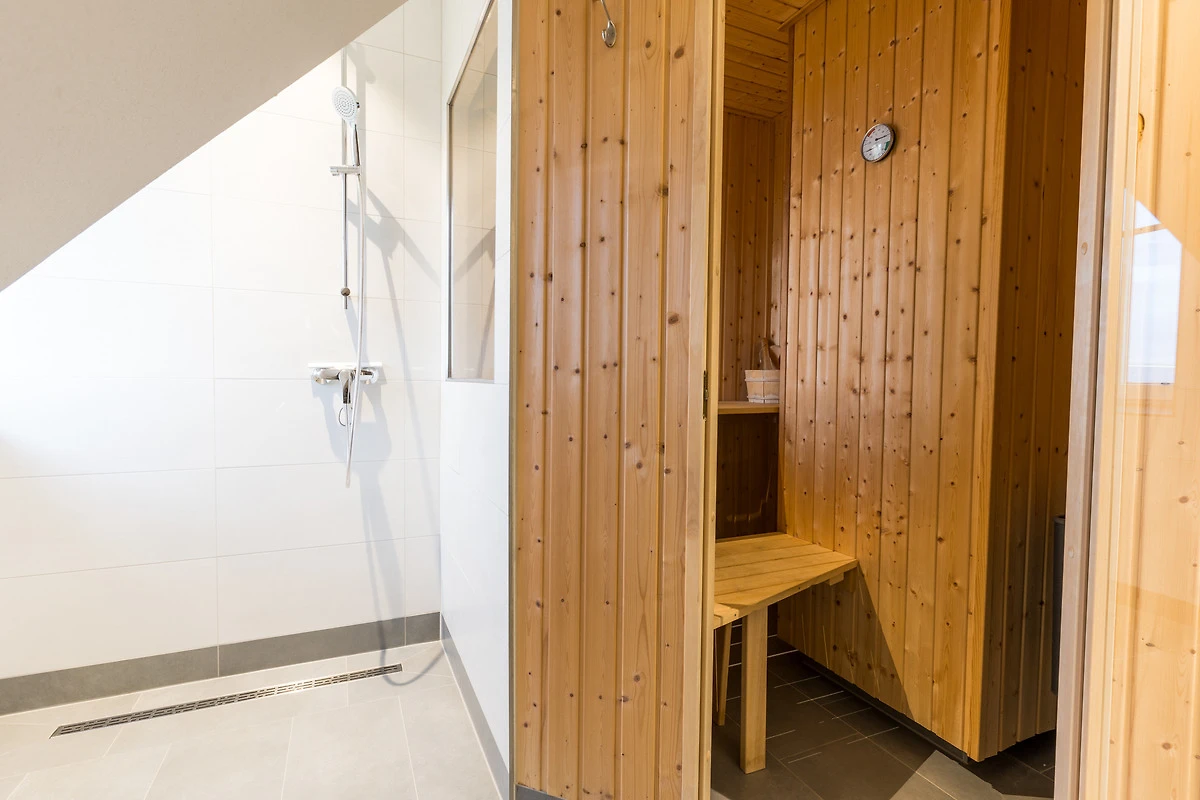 Desweiteren gibt es ein Badezimmer mit Dusche und einen Wellness-Raum mit Sauna und Meerblick!