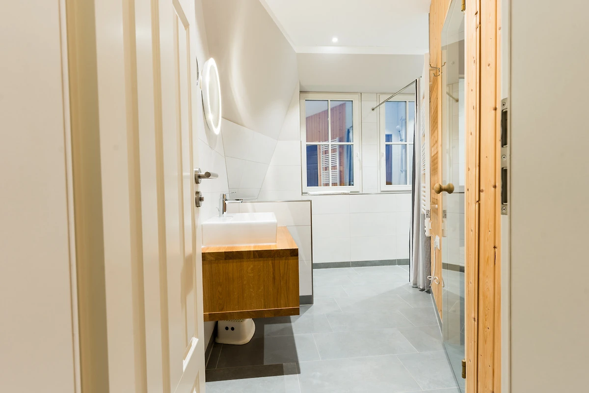 Im geräumigen Badezimmer befindet sich eine Sauna und eine Dusche mit Meeerblick!