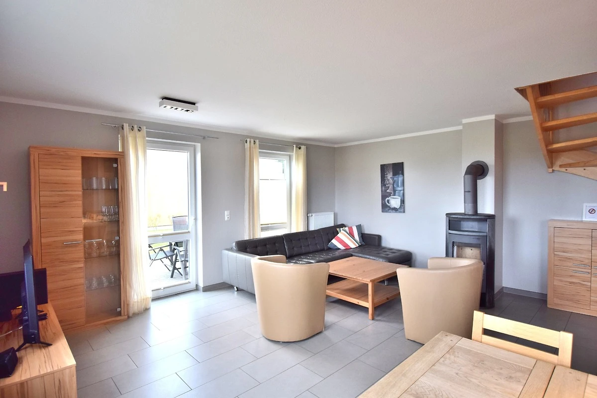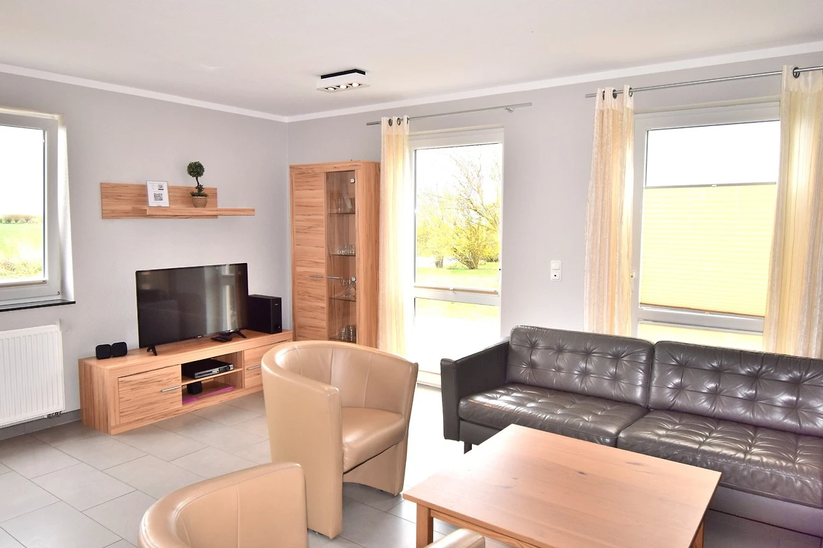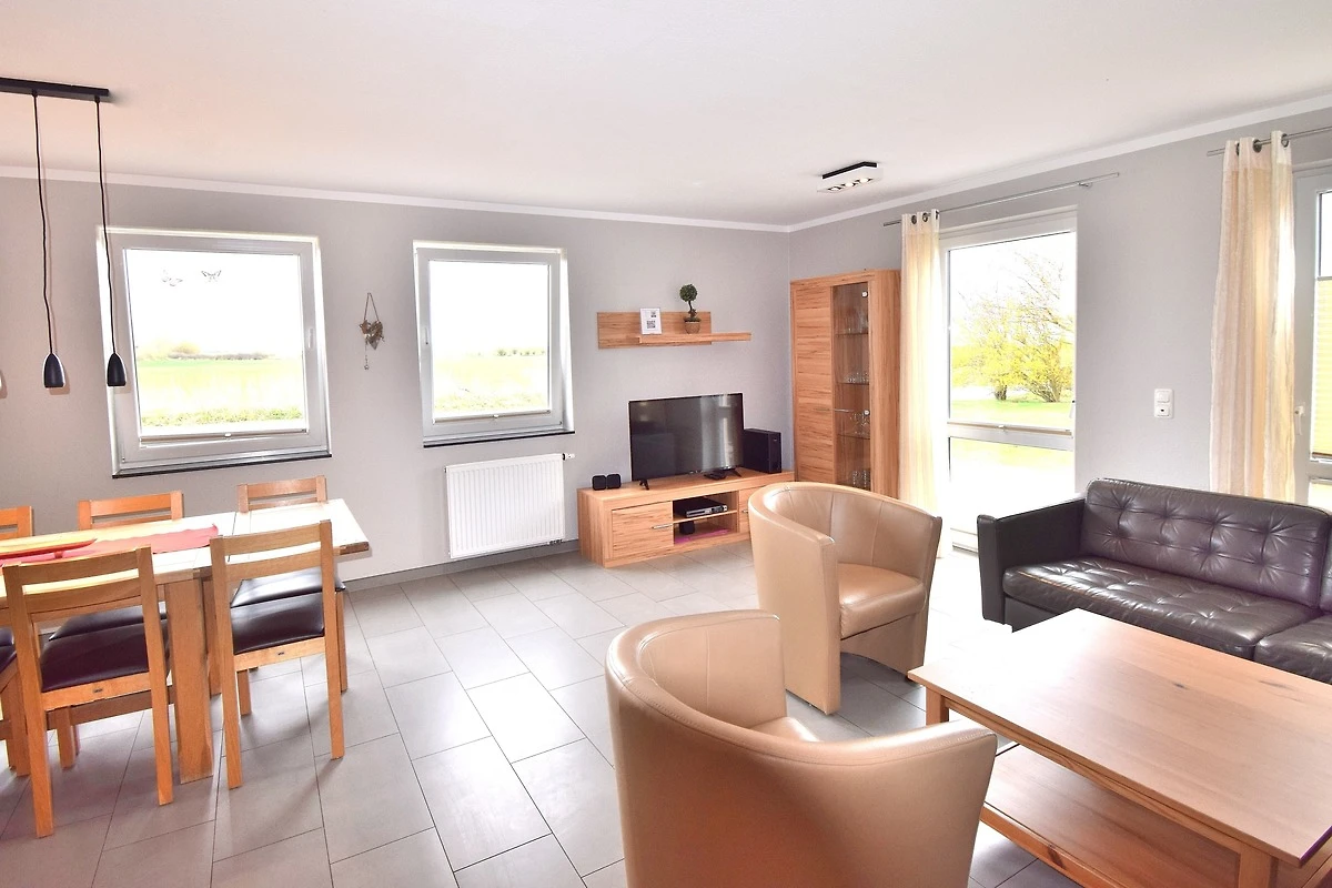 Im grosszügigen Wohn-Esszimmer erwartet Sie ein Fachbild-TV mit Sat-Anlage, DVD-Player, Radio und CD-Player.