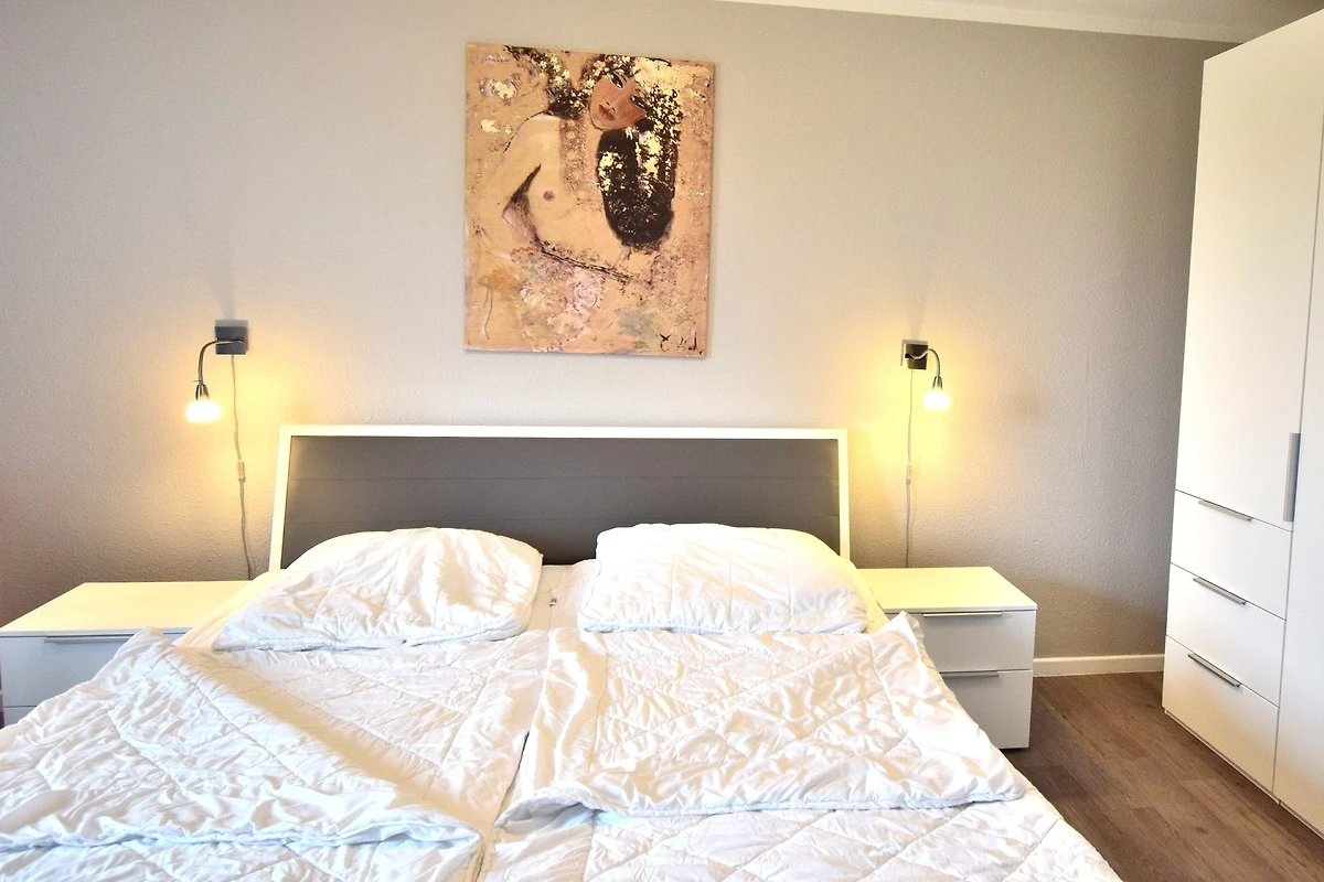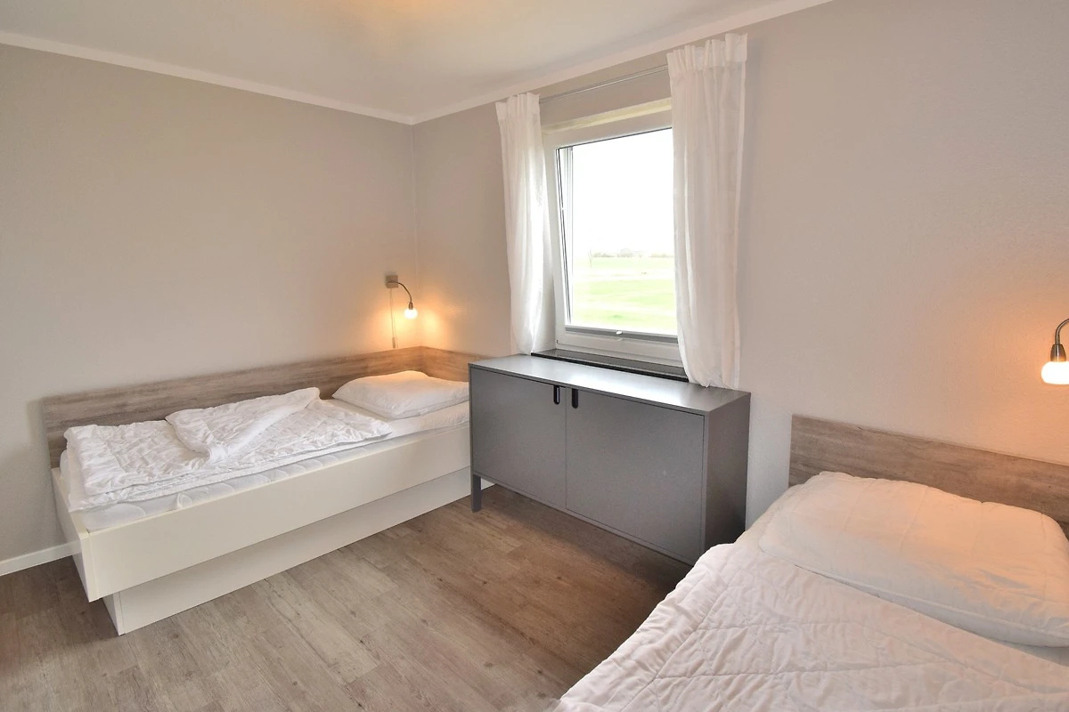 3 Schlafzimmer sind mit je 1 Doppelbett ausgestattet, 1 Schlafzimmer ist mit 2 Einzelbetten ausgestattet.
