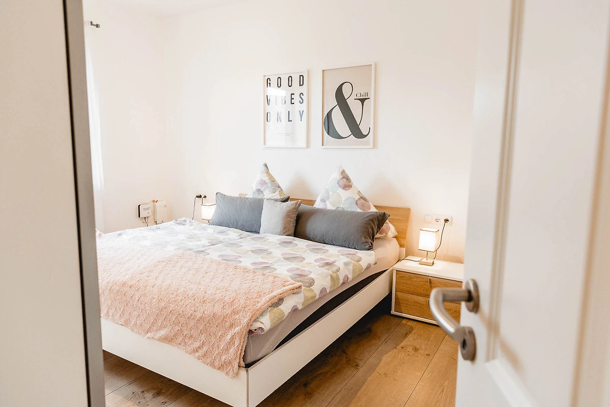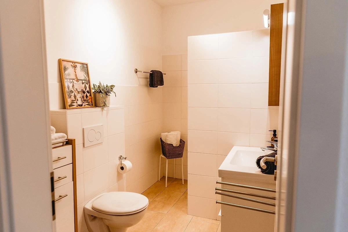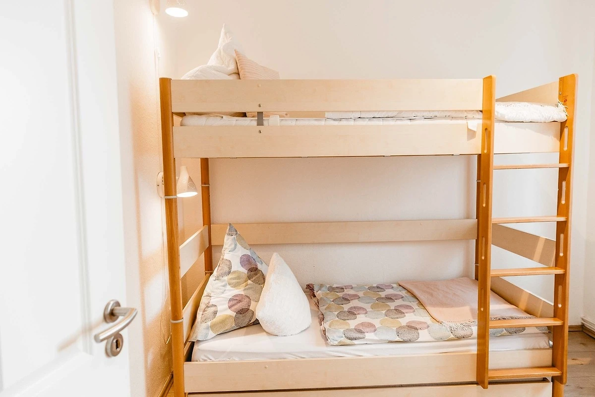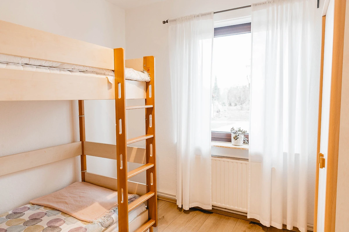 Die Wohnung Landlust verfügt über einen gemütlichen Wohn/Essbereich, Dusche/WC, 2 Schlafzimmer (1 Schlafzimmer mit Ehebett und 1 Schlafzimmer mit Etagenbett, bei dem unten eine dritte Matratze herausgezogen werden kann), Abstellraum.