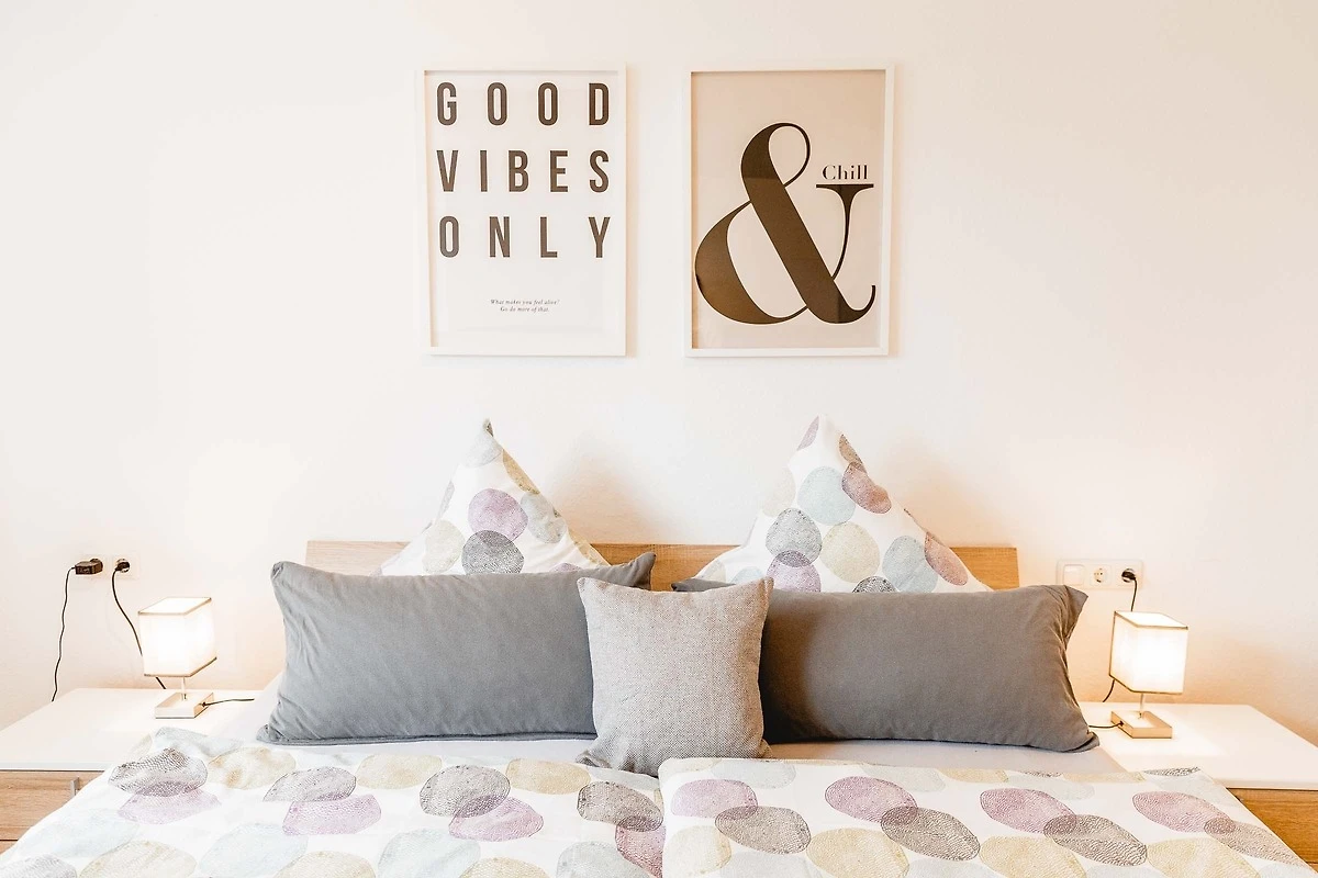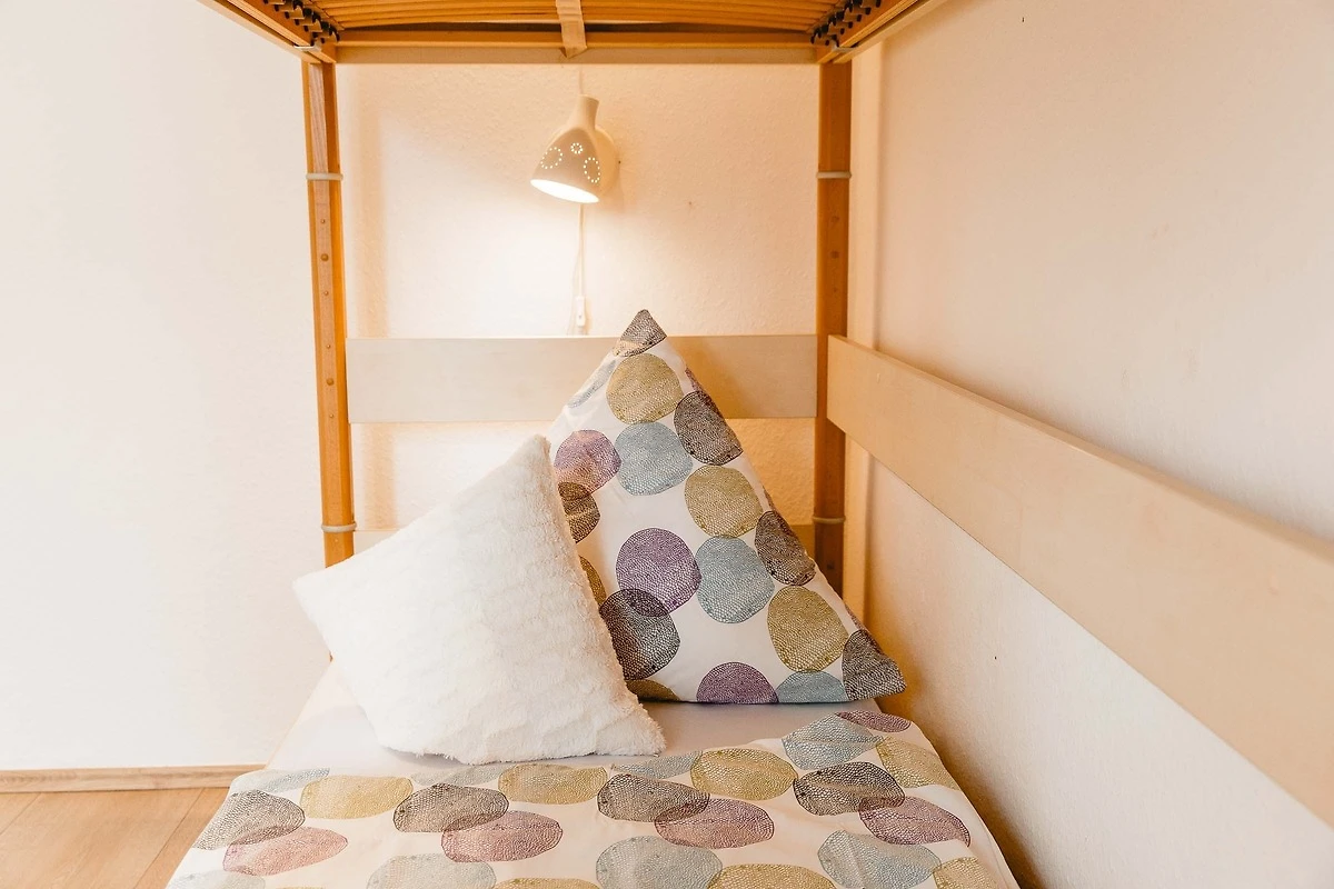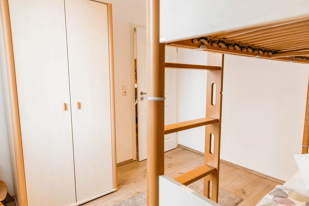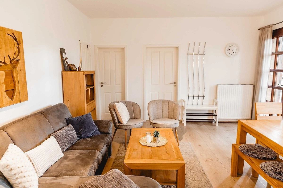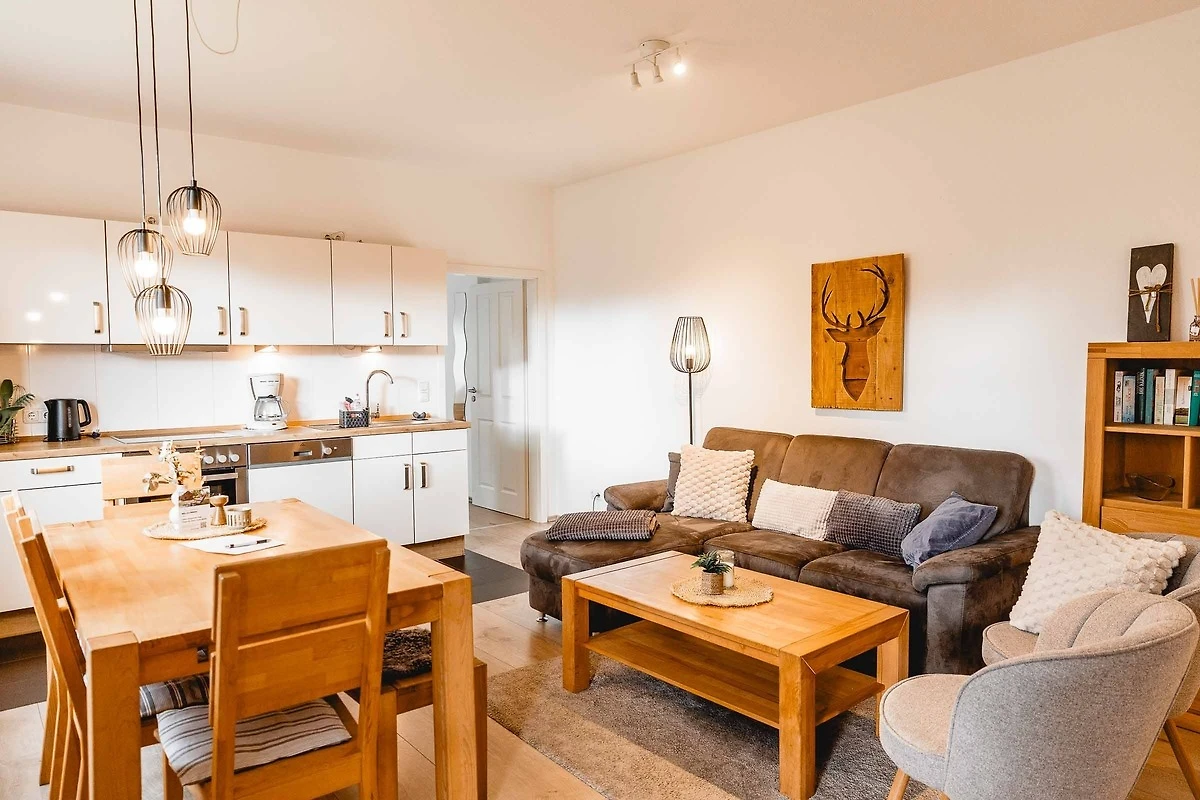 Die Wohnung Landlust verfügt über einen gemütlichen Wohn/Essbereich, Dusche/WC, 2 Schlafzimmer (1 Schlafzimmer mit Ehebett und 1 Schlafzimmer mit Etagenbett, bei dem unten eine dritte Matratze herausgezogen werden kann), Abstellraum.