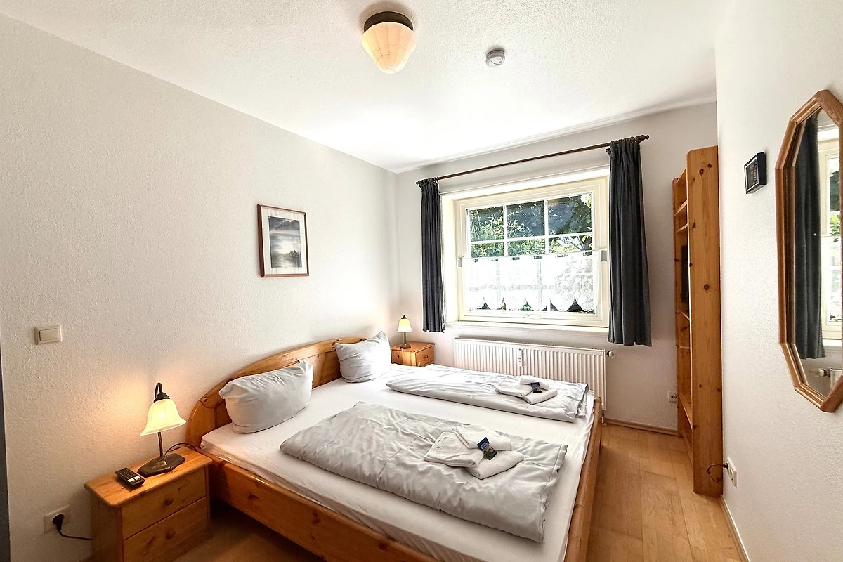 Die Ferienwohnung ist für bis zu 4 Personen ausgestattet: Es erwarten Sie eine freundliche und helle Einrichtung im Wohnzimmer, sowie zwei Schlafzimmer. Der Wohnraum ist mit einem nordischen Kaminofen ausgestattet. Ausserdem bietet Ihnen diese Wohnung zwei gepflegte Duschbäder. Nutzen Sie den schönen Garten zur Ruhe und Entspannung. Seit 2015 können Sie kostenfrei das WLAN Netz nutzen.