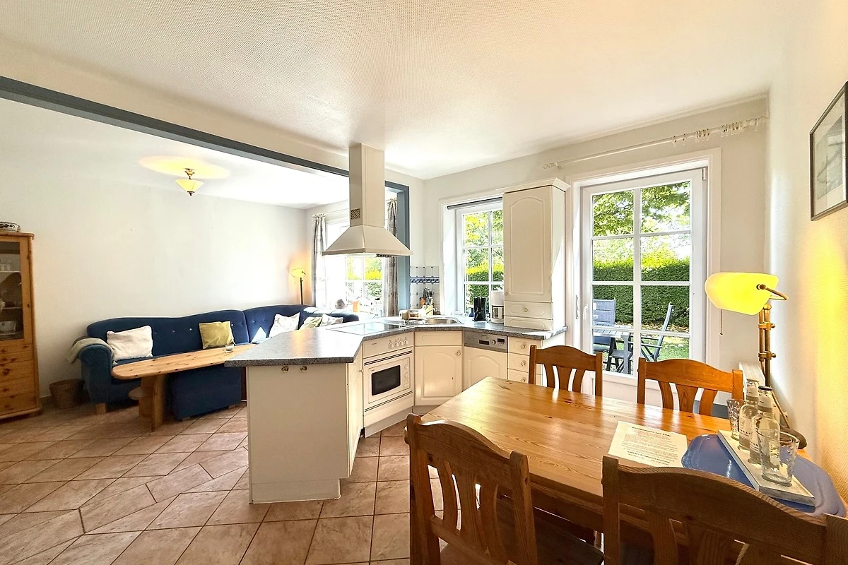 Die Wohnung liegt im Erdgeschoss des Hauses mit eigener Terrasse und Sitzgelegenheiten zum Entspannen und Verweilen.