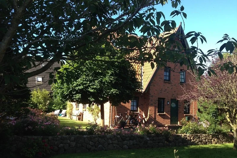 Das Örtchen Oldsum ist geprägt, durch die vielen typischen reetgedeckten Friesenhäuser und ist eines der ursprünglichsten Dörfer auf Föhr. Wenn Sie also die Ruhe lieben und die Natur geniessen wollen, sind sie bei uns genau richtig. Ein historischer Spaziergang lädt dazu ein, diese schöne Gegend zu erkunden. Strände zum Beispiel in Utersum sind problemlos mit dem Fahrrad zu erreichen, hier gibt es auch einen sehr schönen Hundestrand. Vor Ort finden Sie noch einen Lebensmittelmarkt, sowie einige kleine Ateliers und Galerien. Die kulinarischen Highlight´s im Ort sind unsere beiden Cafe´s " Im Apfelgarten" und " Stelly´s Hüüs",ein Besuch lohnt sich!