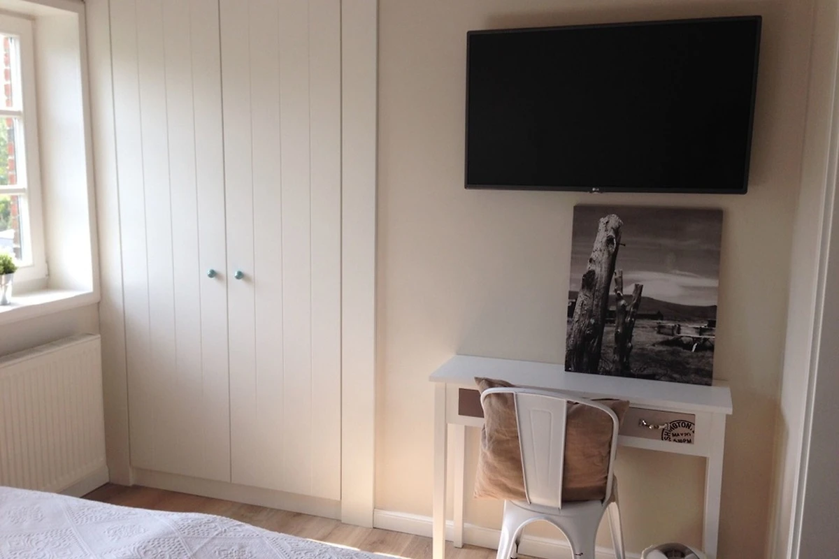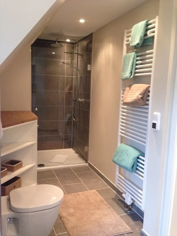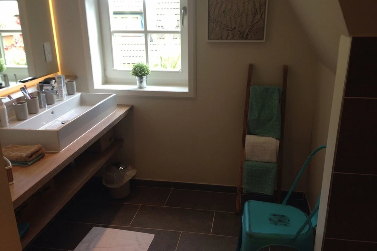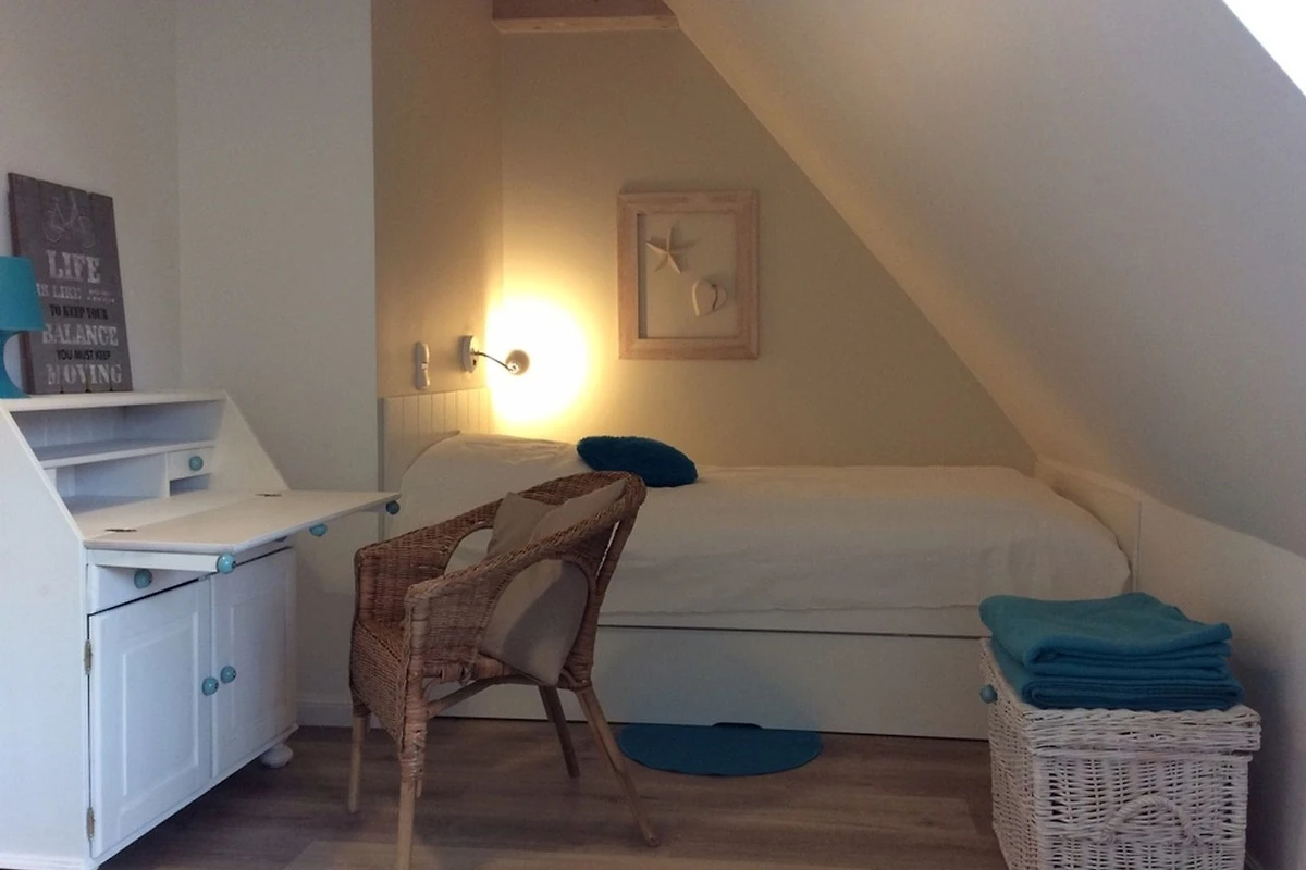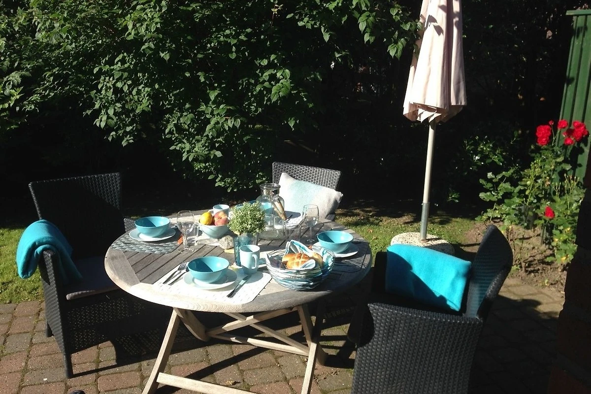 Die windgeschützte Südterrasse ist mit schönen Gartenmöbeln ausgestattet, ausserdem stehen den Gästen zwei bequeme Gartenliegen zur Verfügung. Es gibt zwei moderne Duschbäder mit WC, im oberen Bad befindet sich eine Waschmaschine. Die beiden Schlafzimmer sind mit viel Liebe zum Detail eingerichtet, ein Zimmer mit Doppelbett und TV-Gerät, das andere hat zwei gemütliche Einzelbetten , eins davon mit einem zusätzlichen Ausziehbett. Somit ergeben sich 5 reelle Schlafplätze. Zur weiteren Ausstattung gehören Fön, Bügeleisen/Brett Wäscheständer, Hundenäpfe, Reinigungsgeräte inklusive eine Auswahl an Grundreinigungsmitteln, sowie Hochstuhl und Kinderbett bei Bedarf. Parkplätze befinden sich vor dem Haus.