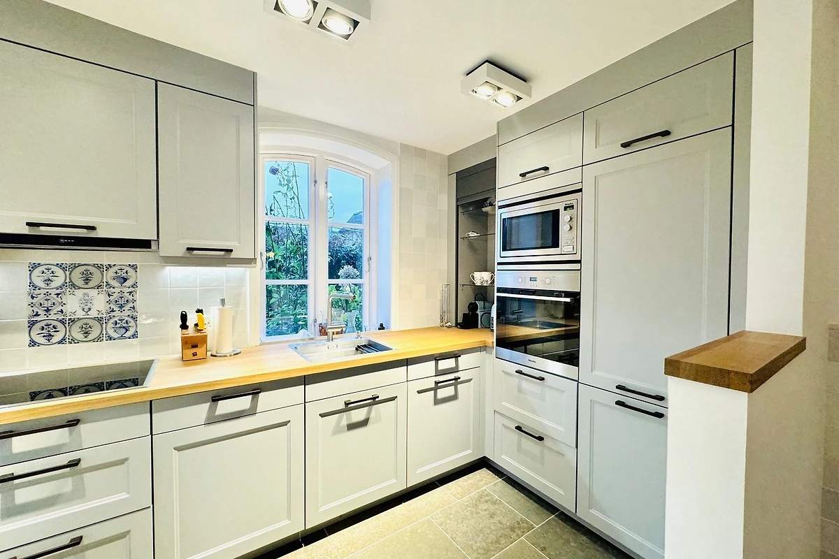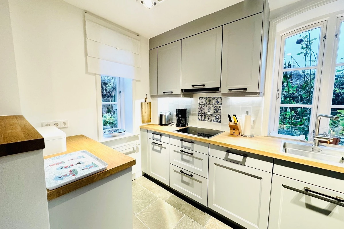 Nutzen Sie den gepflegten Garten zur Ruhe und Entspannung bei einem guten Buch oder dem Sundowner bei guter Unterhaltung mit freier Sicht in Richtung Oldsumer Mühle. Ein Pkw-Stellplatz am Haus ist vorhanden. Im gemeinschaftlichen Waschraum können Waschmaschine und Trockner genutzt werden.