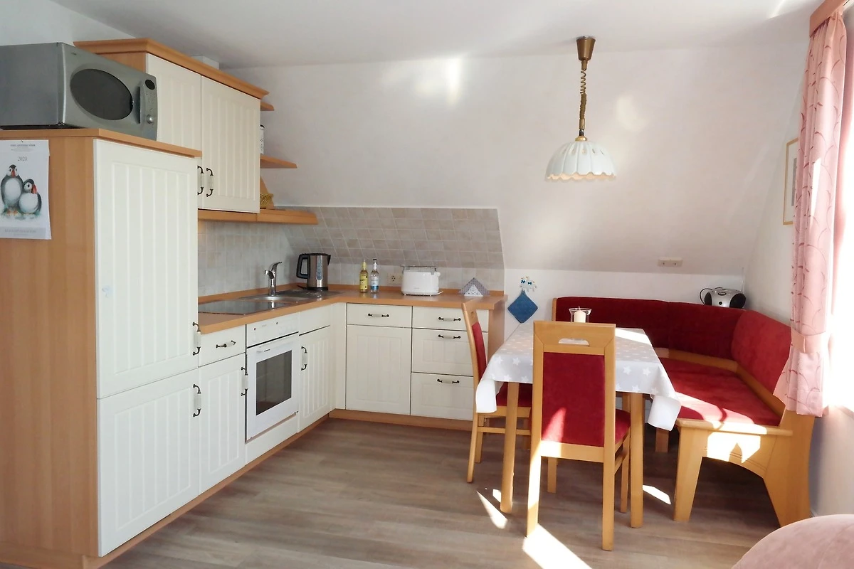 Liebevoll eingerichtete FeWo mit vielen kleinen nützlichen Ausrüstungsgegenständen.Die Wohnung liegt im 2. Stock unterm Dach. Eine gewundene etwas schmale Treppe führt zur Wohnung. Uns hat sie sehr gefallen.
