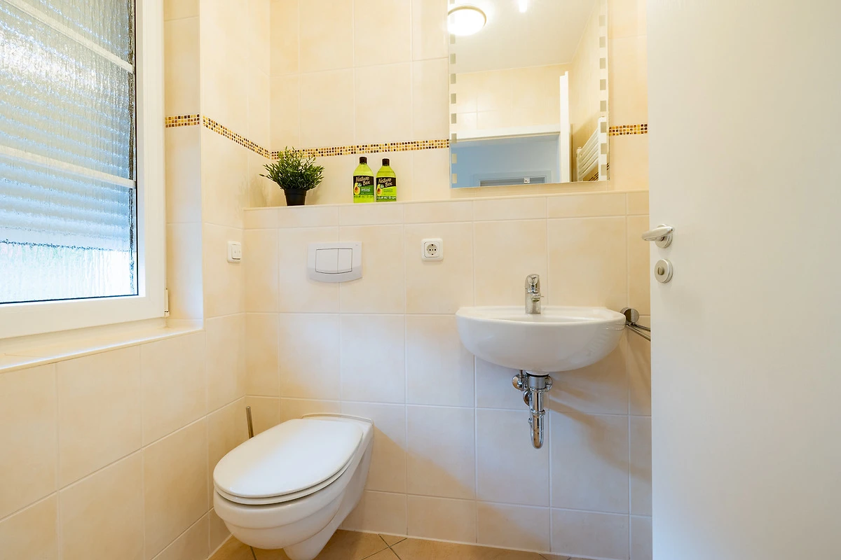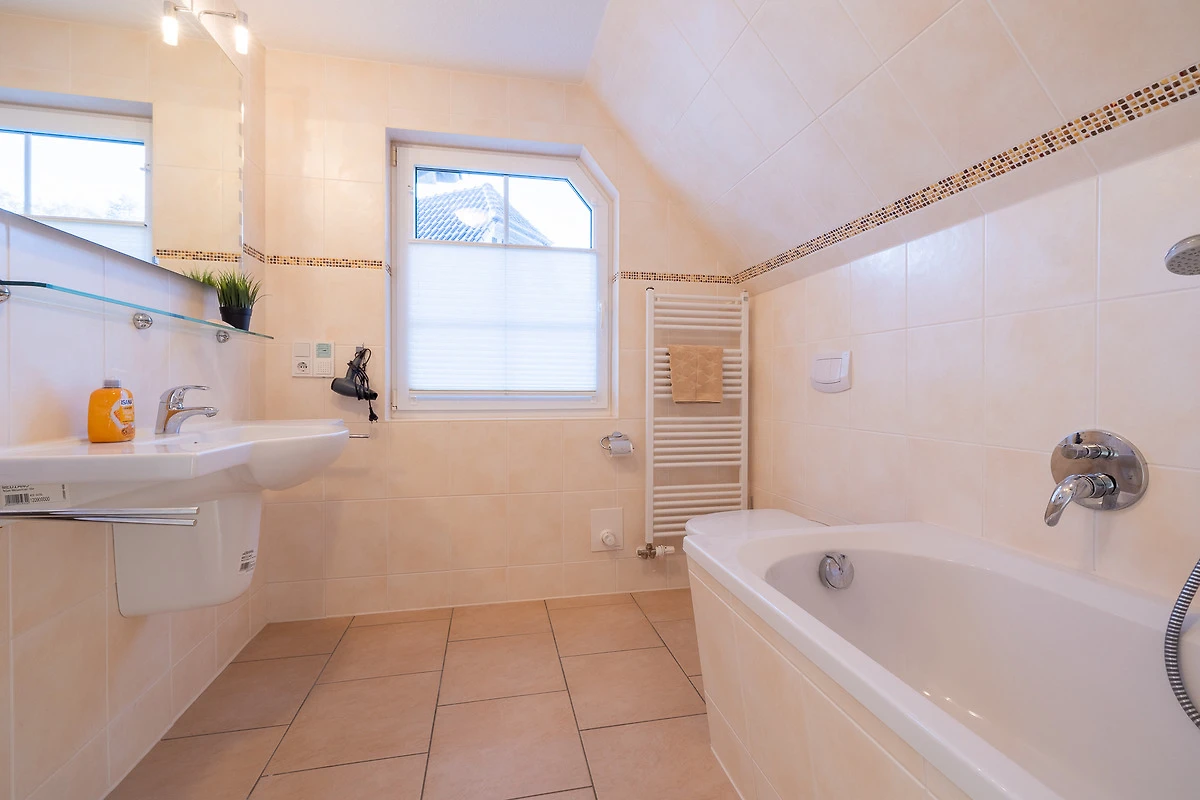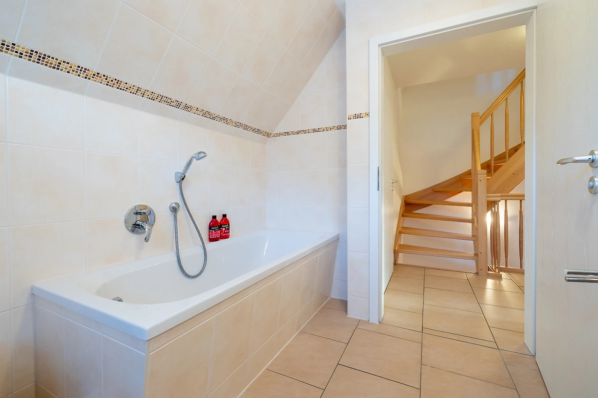 Ebenfalls im 1 Obergeschoss das grosse Badezimmer mit Badewanne, Dusche und WC sowie die hauseigene Sauna.