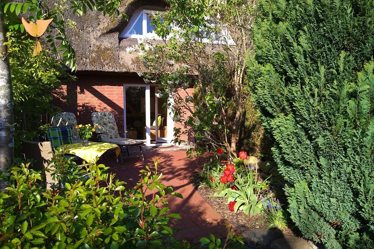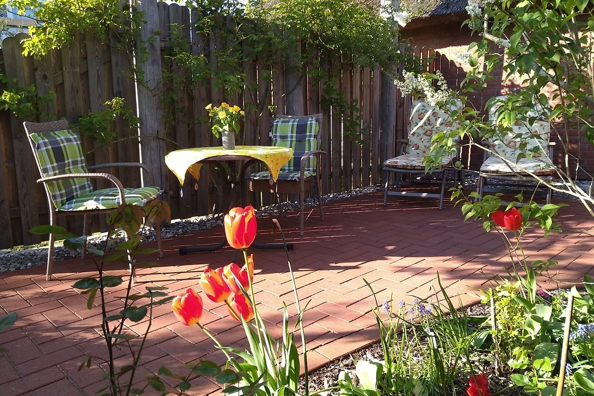 Richtige Urlaubsstimmung kommt auf der schönen Terrasse mit angrenzendem kleinen Garten der Ferienwohnung auf.