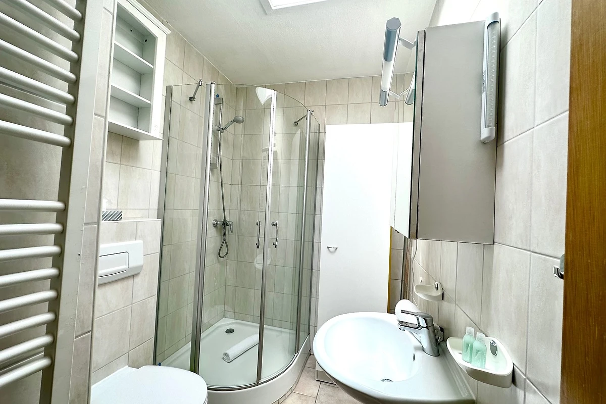 Die Duschabtrennung war undicht und konnte nicht in den 2 Wochen repariert werden. Es fehlte 1 Wäscheständer, der aber sofort nachgeliefert wurde!