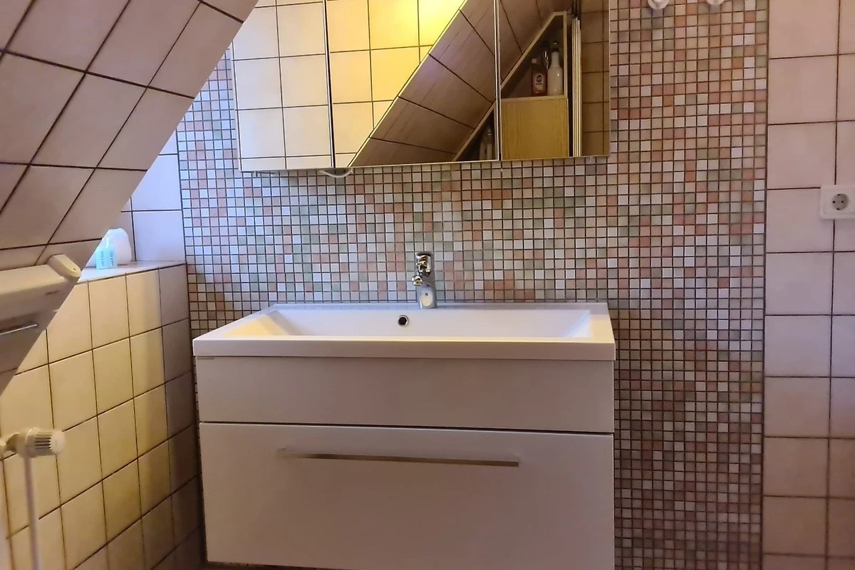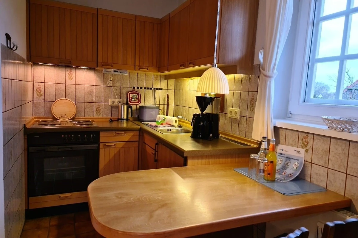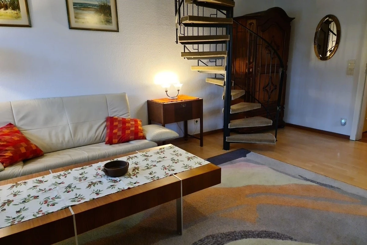 Moin. Die Wohn/Küche war gross und hell. 4 Punkte. Die Ausstattung gefiel uns nicht so sehr. Dafür war die Kunstledersofa zu tief und der Couchtisch zu tief. Es war schon etwas beschwerlich von dem Sofa aufzustehen. Auch waren leider zu wenig Ablagen zum unterbringen persönlichen Gegenstaende wie Wäsche etc. vorhanden. Dafür geben wir 3 Punkte. Die Küche war zwar klein, aber mit allen Küchengeräten ausgestattet. 4 Punkte. Der Weg zum Doppelbett in den oberen Stockwerk, ist etwas beschwerlich. Der Weg führt über eine enge Wendeltreppe und ist etwas beschwerlich. Leider nur 2 Punkte dafür. Die Betten waren sauber und mit frischer Bettwäsche ueberzogen. 4 Punkte. Das Bad war, bedingt durch schräge Wände klein, aber Dusche, Toilette und Waschbecken waren sauber. Saubere Handtücher lagen griffbereit. 4 Punkte. Im Allgemeinen hat uns der Urlaub dort gefallen und wir wären auch bereit diese Wohnung nochmals zu mieten. Deshalb gibt es von uns 4 Punkte.