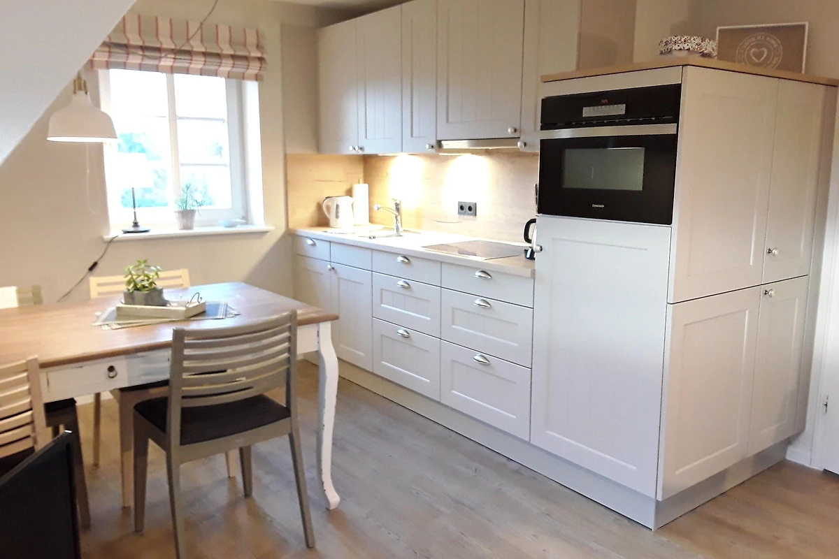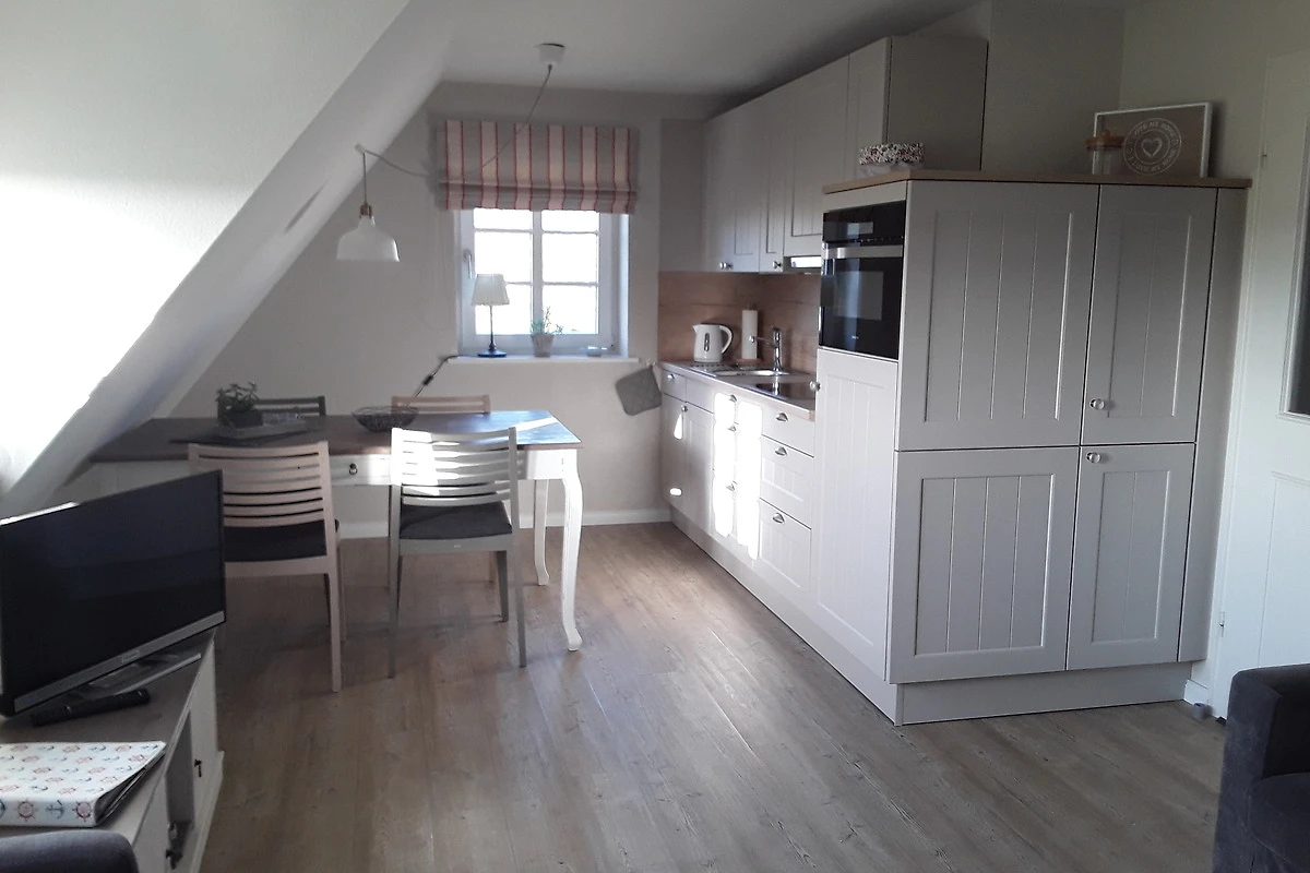 Zur Wohnung gehört ein kostenfreier PKW-Stellplatz am Haus, eine eigene Terrasse mit Strandkorb und Gartenmöbeln (April-September).