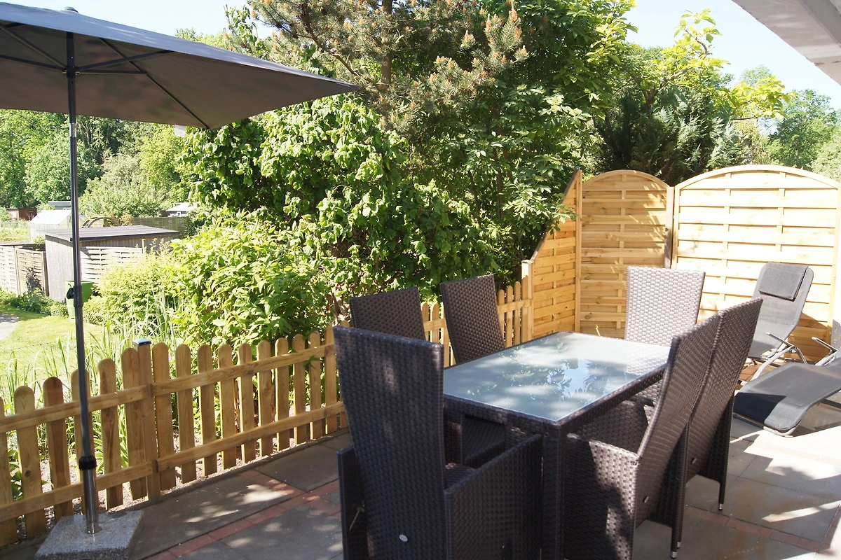 Sie verfügt über 2 separate Schlafzimmer, eines mit Doppelbett (180x200cm) Schrank, Kommode und TV Gerät. Hier ist auch noch ausreichend Platz für ein Kinderreisebett. Im 2. Schlafzimmer befinden sich 2 Einzelbetten (90x200cm) ein Kleiderschrank und TV Gerät mit DVD Player. Das Wohnzimmer ist mit einem gemütlich wärmenden Holzofen, TV- Wand, Esstisch mit 4 Stühlen und Couchgarnitur sowie Zugang zur möblierten und eingezäunten Terrasse mit Holzkohlegrill ausgestattet. Die komplett ausgestattete Küche lässt keine Wünsche offen, neben Kühlschrank mit Gefrierfächern befinden sich Backofen, Ceranfeld, Geschirrspüler, Waschmaschine und Mikrowelle in ihr. Das Badezimmer ist mit begehbarer Dusche, Handtuchheizkörper und WC ausgestattet. Als Fussbodenbeläge werden Fliesen im Bad und ein Vinylboden in der Küche und den Wohnräumen verlegt. Vor dem Haus befindet sich ein eigener Kfz- Stellplatz. Fahrräder können in der Holzhütte untergestellt werden. Für Hundebesitzer sind der nahegelegene Wald und der Hundestrand im Süden des Ortes ideal.