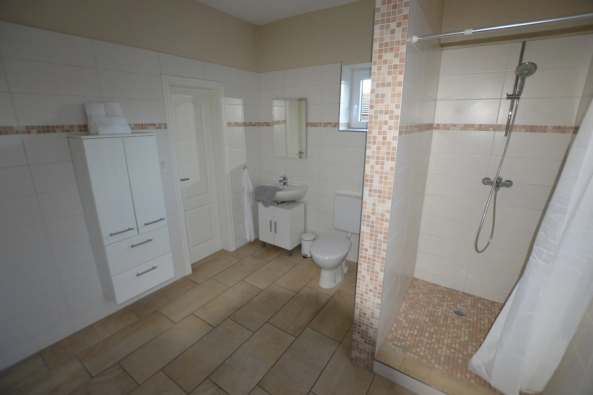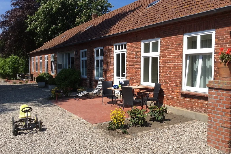 Ihre grosszügige, moderne Wohnung im Bauernhaus befindet sich rechts neben der Rezeption in Richtung der neuen Gartenhäuser. Sie betreten die Wohnung über einen kleinen Flur. Von hier aus gehen Sie in das Badezimmer, wovon Sie einen Schlafraum betreten. Das grosse, ansprechende Wohn- Esszimmer, wie auch die schöne separate Küche sind toll geschnitten. Das geräumige Duschbad haben wir für Sie 2016 komplett erneuert. Ihre Südterrasse befindet sich vor dem Haus.