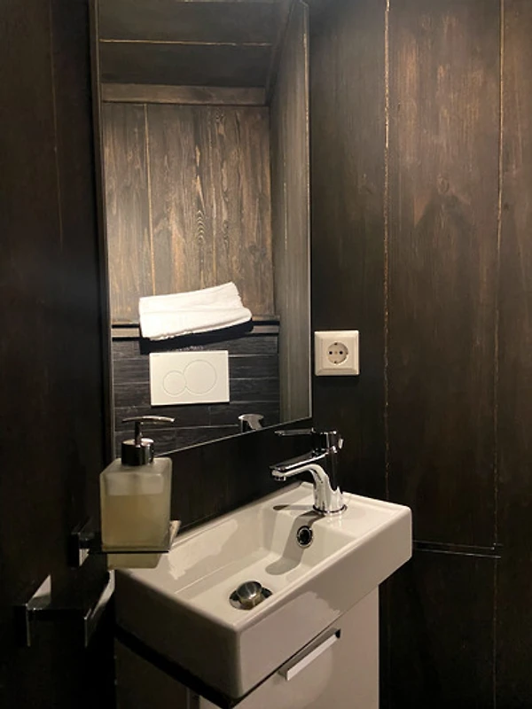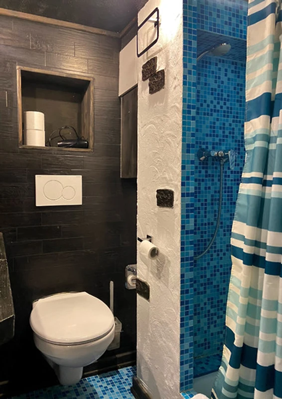 Auf dieser Ebene befindet sich auch ein kleines Badezimmer mit Dusche und WC.