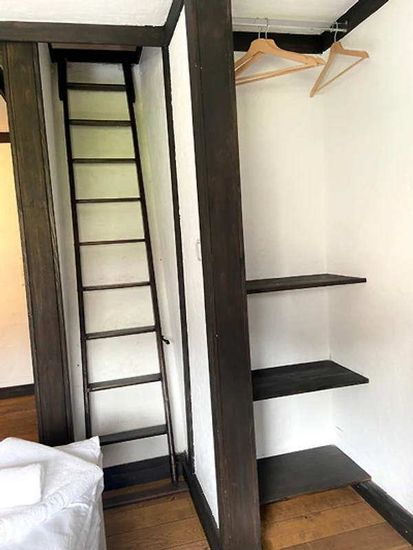 One floor higher, accessible via a ladder, there is a comfortable sleeping berth for 2 people.