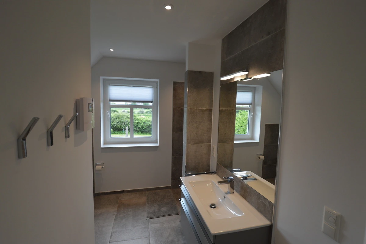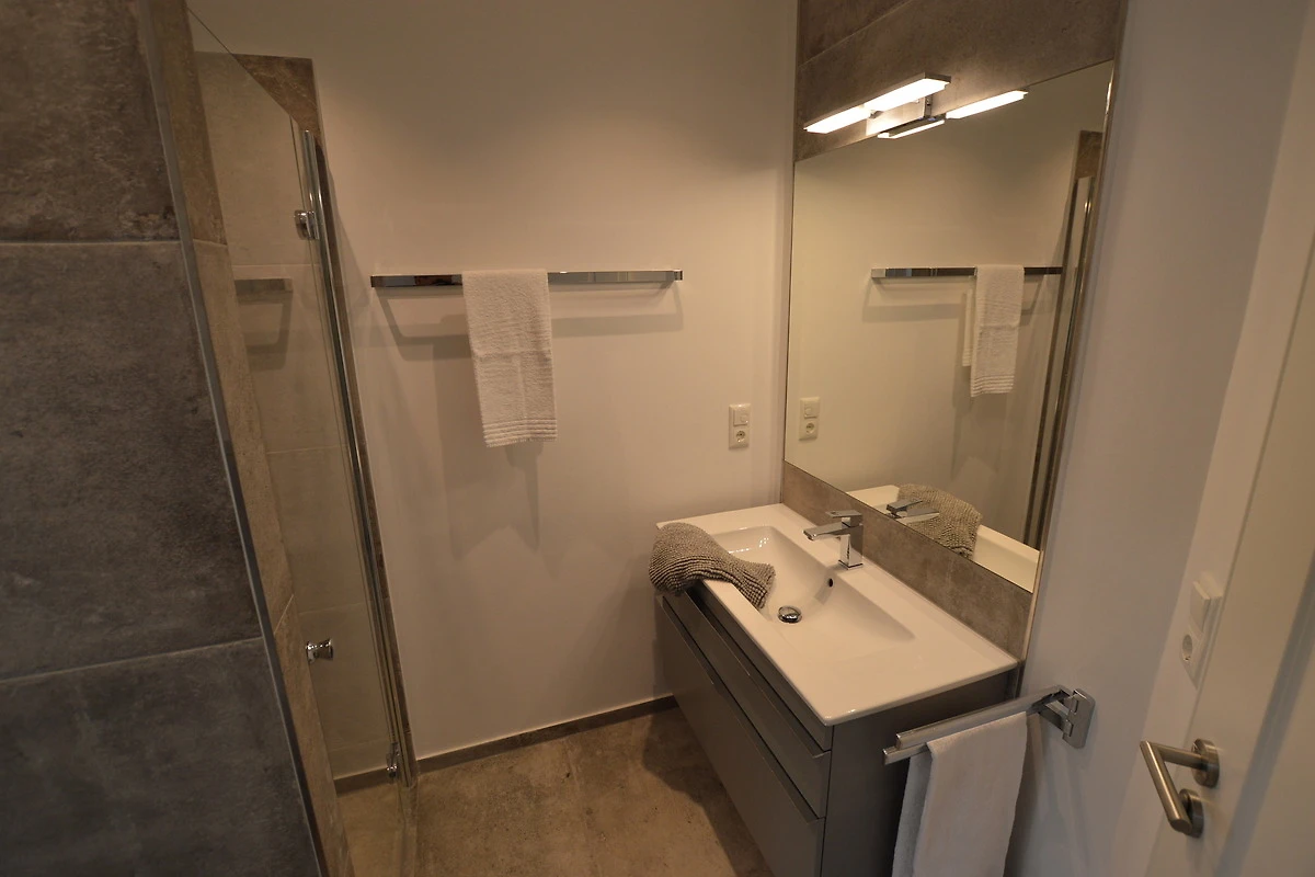 Ihre Sauna ist durch Ihr ansprechendes Duschbad erreichbar.