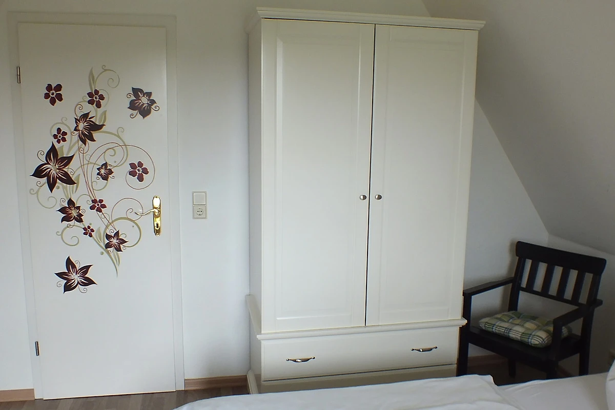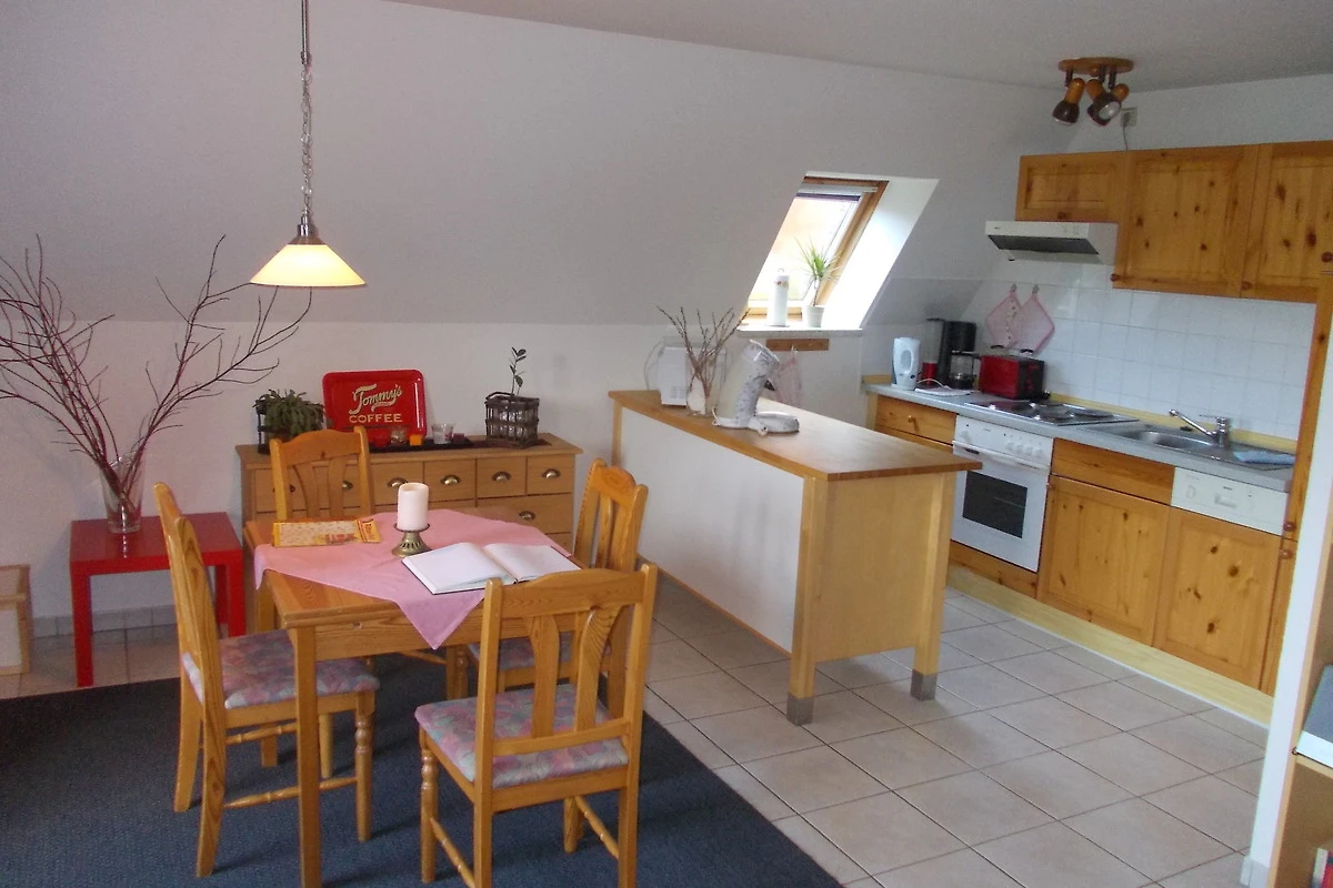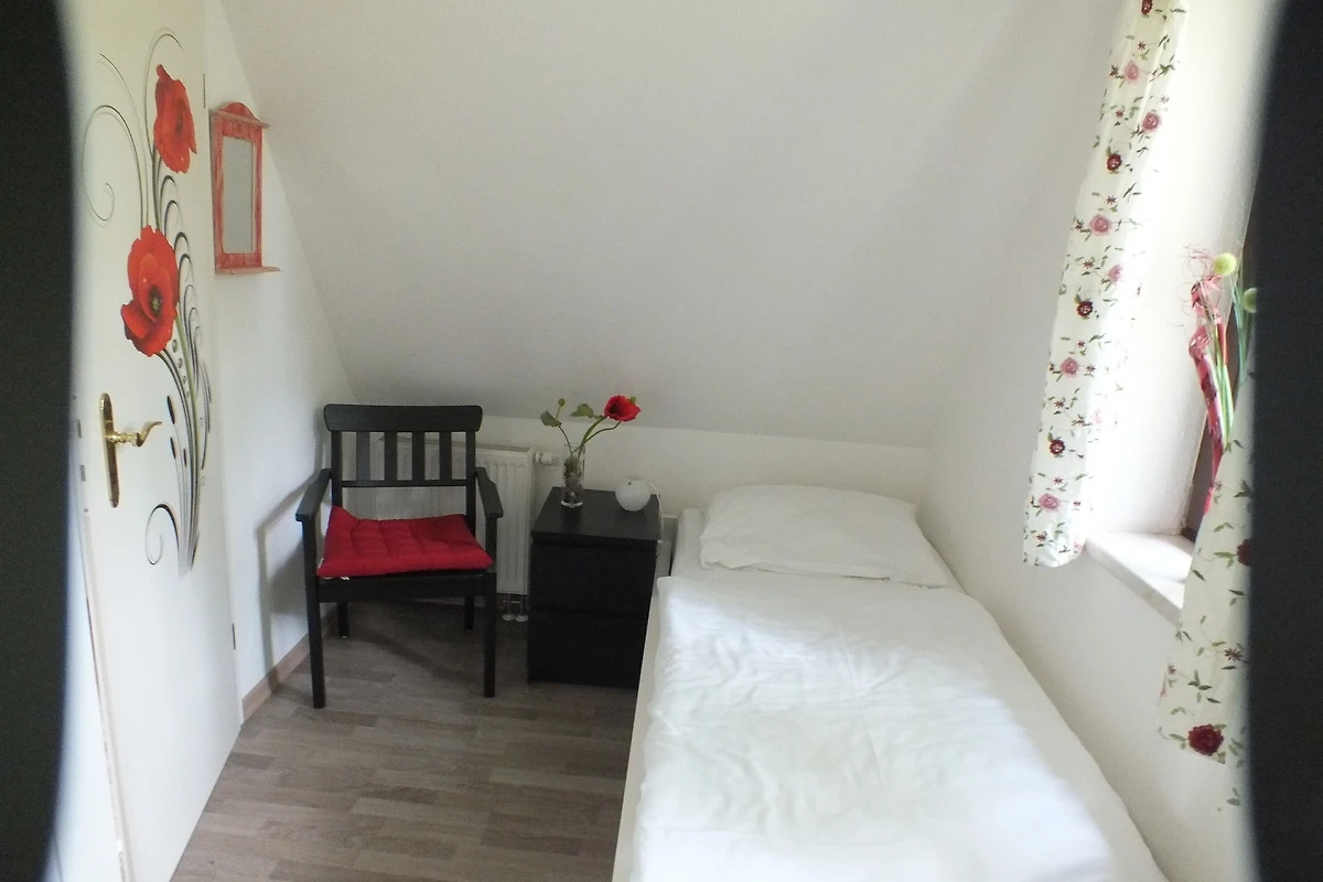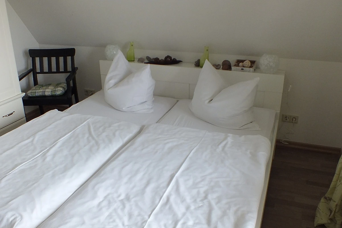 Im Erdgeschoss befindet sich der Wohnraum mit Küchenzeile, Du/WC. Die beiden separaten Schlafzimmer - 1 x Doppelbett, 1 x 2 Einzelbetten befinden sich im Obergeschoss.