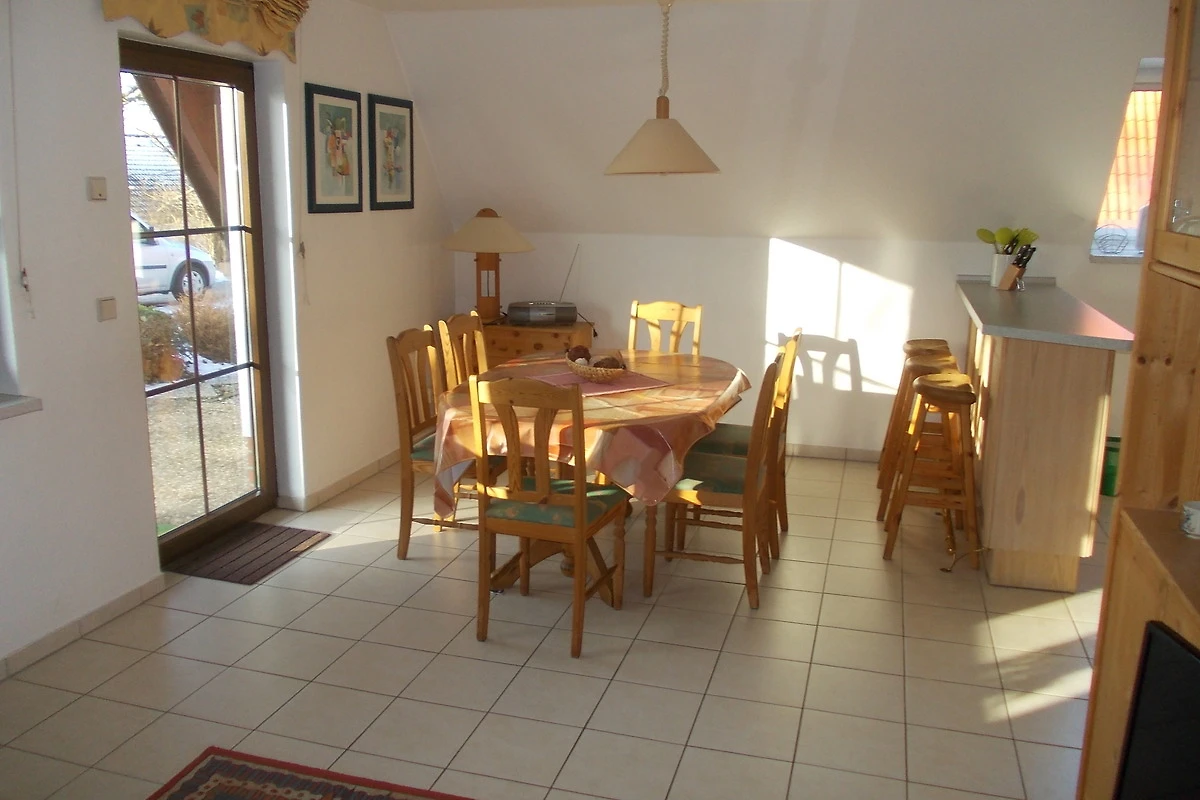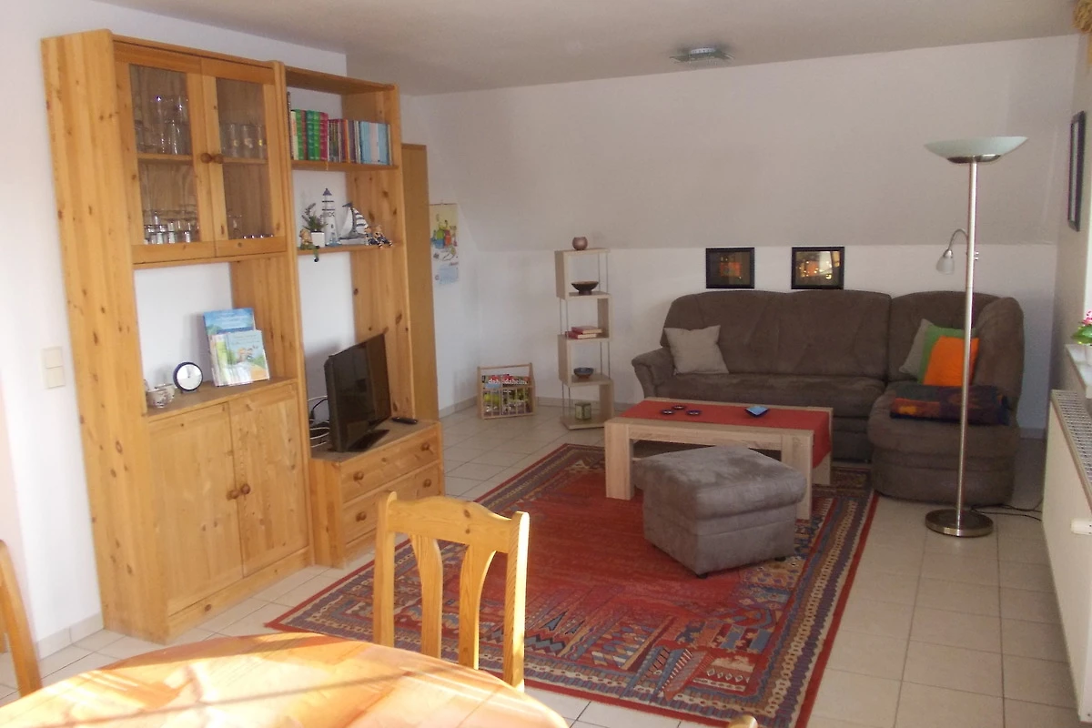 Im Erdgeschoss befindet sich der Wohnraum mit Küchenzeile, Du/WC. Die beiden separaten Schlafzimmer - 1 x Doppelbett, 1 x 2 Einzelbetten befinden sich im Obergeschoss.