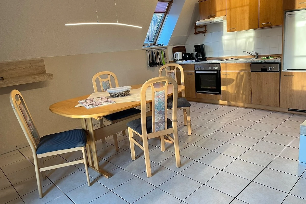 Im Erdgeschoss befindet sich der Wohnraum mit Küchenzeile, Du/WC. Die beiden separaten Schlafzimmer - 1 x Doppelbett, 1 x 2 Einzelbetten befinden sich im Obergeschoss.