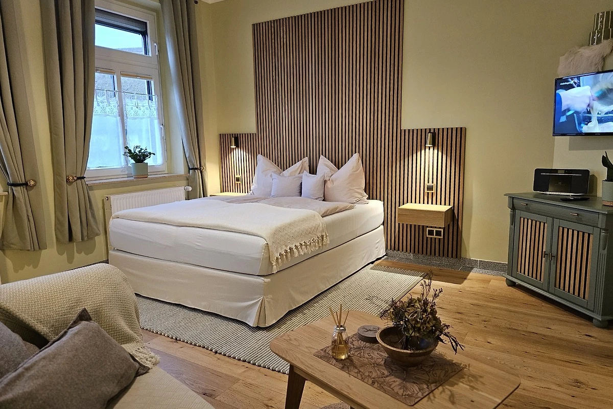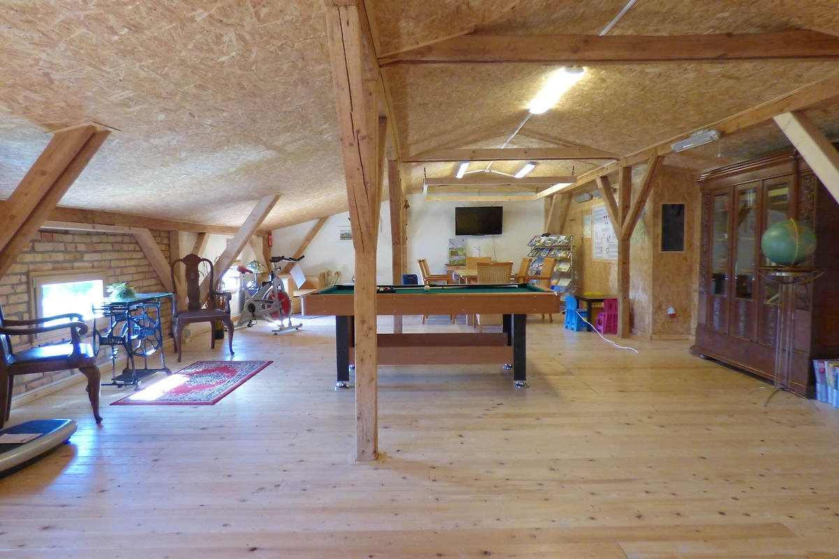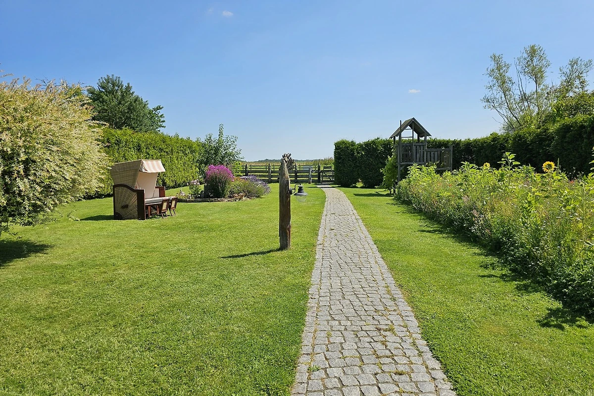 Den Gästen der Ferienwohnungen stehen der Innenhof sowie der grosszügige Garten mit direktem Zugang zur einzigartigen Boddenlandschaft zur Verfügung. Bei schlechtem Wetter können Sie den Spielboden in der Scheune nutzen, wo Billard, Darts und Sportgeräte für Spass sorgen. Alternativ stehen Ihnen das Saunahaus (gegen Gebühr) und das Ruhehaus mit Minigradierwerk zur Verfügung. Zum Wellnessangebot gehört ausserdem ein kleiner Barfusspfad. Diese Einrichtungen bieten die perfekte Gelegenheit, sich zu entspannen und neue Energie zu tanken.