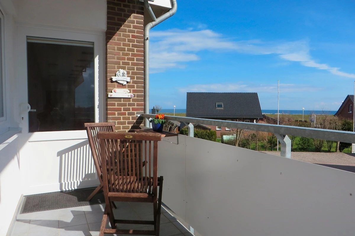 Auf dem geräumigen Balkon mit seitlichem Meerblick und elektrisch ausfahrbarer Markise können Sie gemütliche Stunden verbringen, sich auf dem vorhandenen Elektrogrill eine leckere Mahlzeit zubereiten und die untergehende Sonne beobachten.