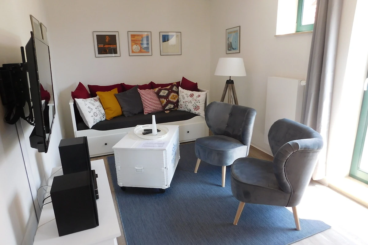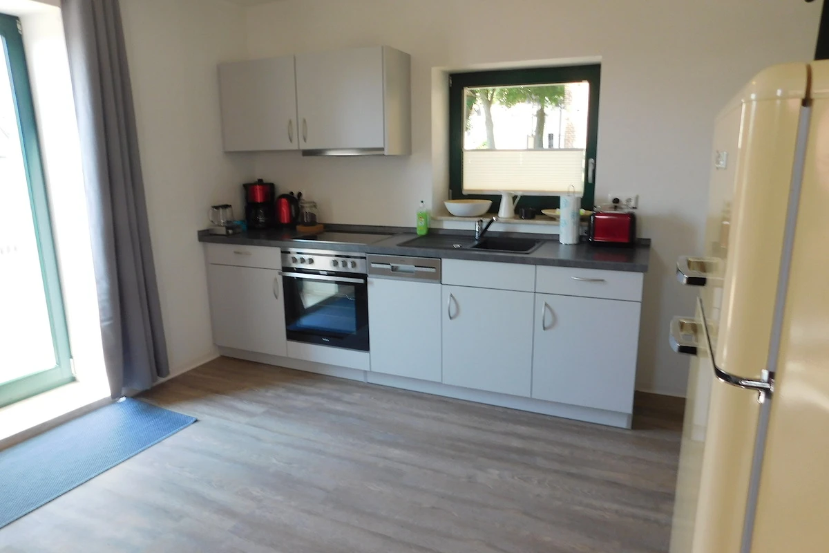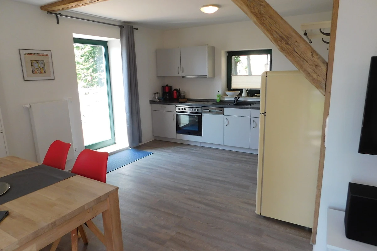 Aufbettungen für Kinder sind möglich. Beide Ferienhäuser sind nahezu identisch eingerichtet und Nichtraucher-Wohnbereiche. Im Erdgeschoss befindet sich eine Wohnküche mit gemütlicher Sitzecke, einem Ess- oder Arbeitstisch und dem Küchenbereich. Von hier aus haben Sie Zugang zu einer ca. 12 qm grossen Terrasse, die durch die Lage der Gebäude einen interessanten Blick auf das Kleinstadtflair erlaubt.