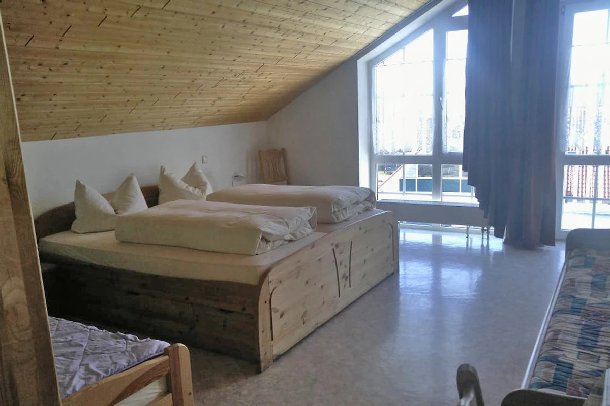 Die grossen komfortablen Zimmer (Doppelbett mit zwei Zustellbetten) sind mit Bad, Dusche, WC und SAT-TV ausgestattet. Jedes Zimmer hat Balkon und Bergblick. Ausreichend Parkplätze vorhanden. Kostenloses WLAN. Wanderer, Pilger, Radfahrer und Motorradfahrer sind bei uns auch für eine Nacht herzlich willkommen!