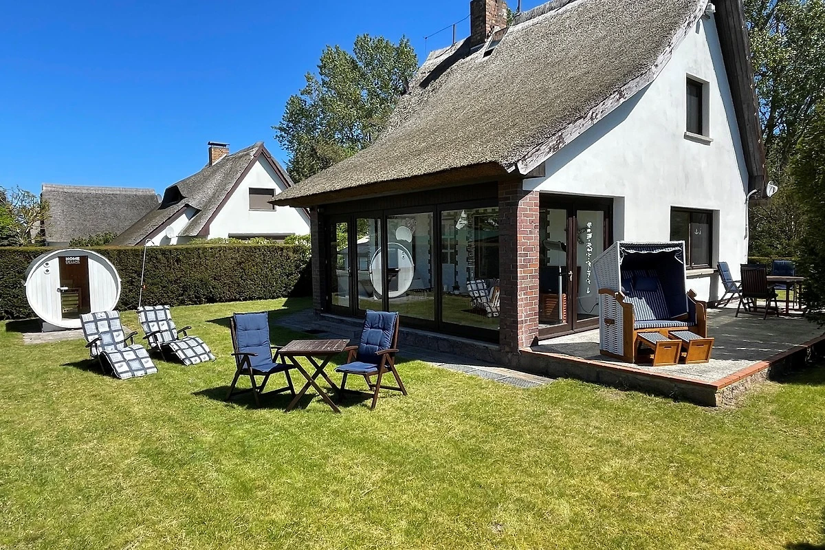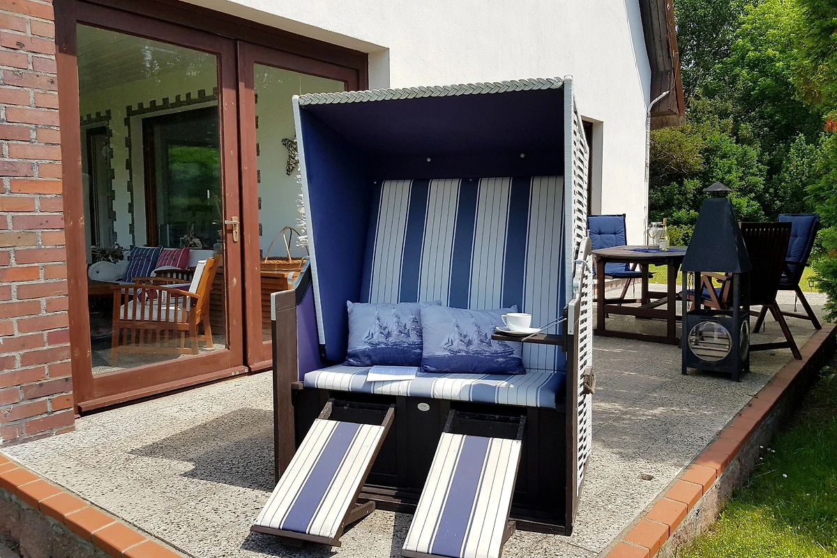 Richtige Urlaubsstimmung kommt auf der schönen Terrasse des Ferienhauses auf, das sich in der Mitte zwischen den Ostseebädern Dierhagen und Wustrow am Strandaufgang 19 befindet. Hinweis: in Google-Maps bitte Retort-Heide 1, 18347 Wustrow eingeben, da die Strassennamen bei Google-Maps leider falsch hinterlegt sind.