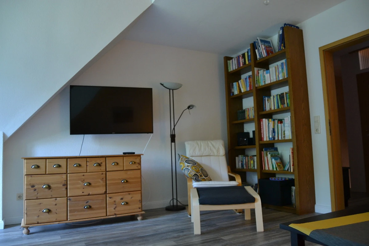 Flachbildfernseher, einem Tisch für gesellige Abende sowie einer Leseecke mit einer grosszügigen Auswahl an Romanen, Kinderbüchern, Krimis, Gesellschaftsspielen, etc.. Weiterhin steht Ihnen in unserem hellen Badezimmer neben der Dusche, Badewanne und WC eine Waschmaschine zur Verfügung. Die Küche bietet Platz für ein gemütliches Frühstück oder gemeinsame Koch Abende.