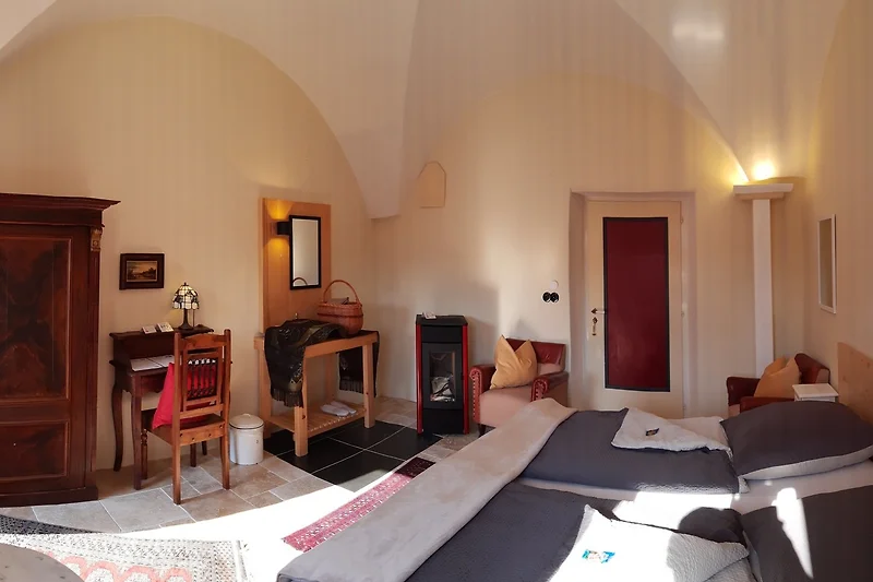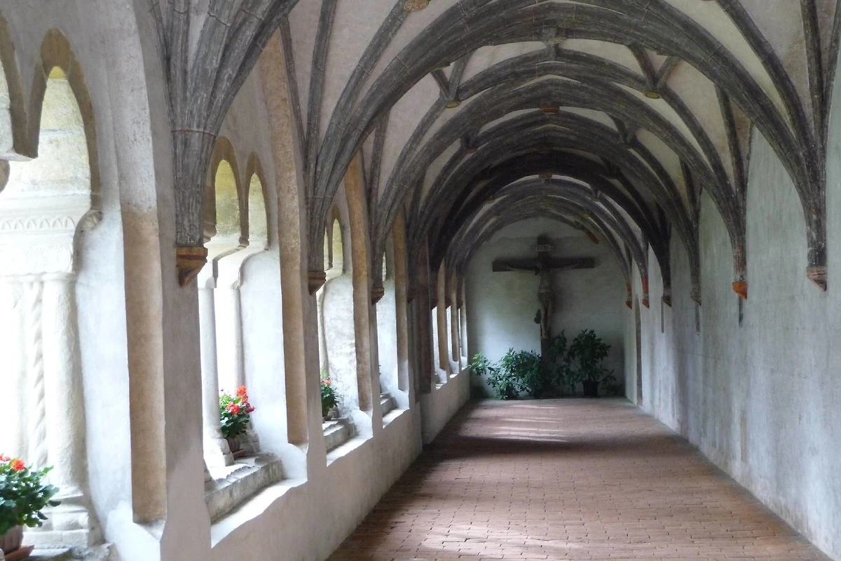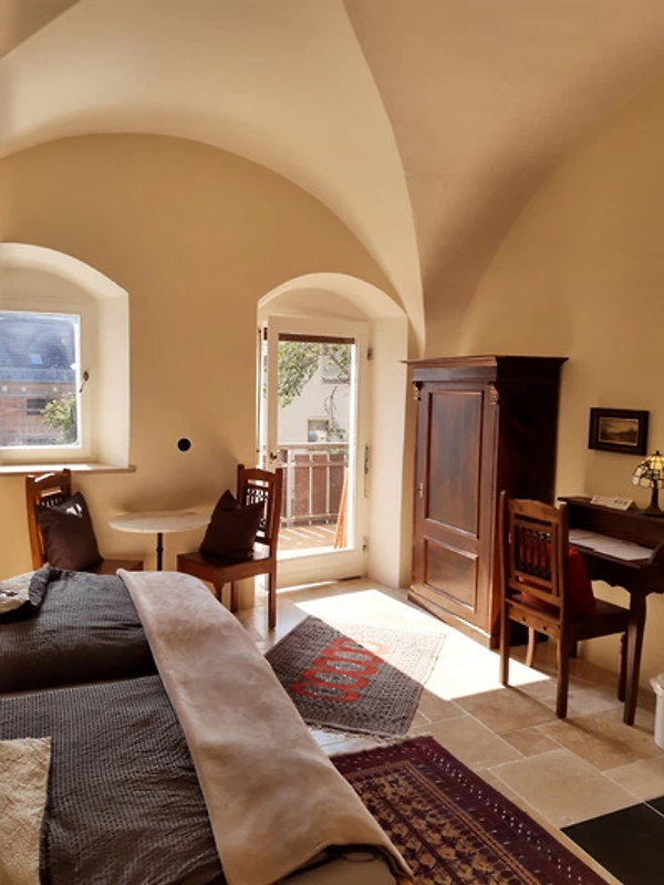 Das "Gerolamo Cardano" erreichen Sie über einen separaten Eingang, direkt in der Klosterpforte und das Foyer. Die Camera ist ein grosszügiger, heller Kreuzgewölbesaal, in historischen, fast einen Meter dicken Sandsteinmauern, die im Winter gut vor der Kälte schützen und im Sommer angenehme Kühle spenden.