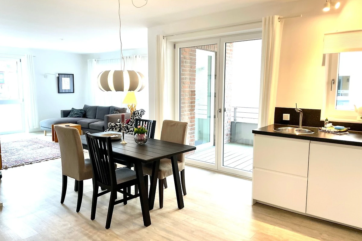 Sie wohnen in einer komfortabel und geschmackvoll eingerichteten Neubauwohnung auf 105 qm, im Erdgeschoss (Halbparterre auch mit Aufzug erreichbar) im neuen Quartier Hafenspitze von Eckernförde.