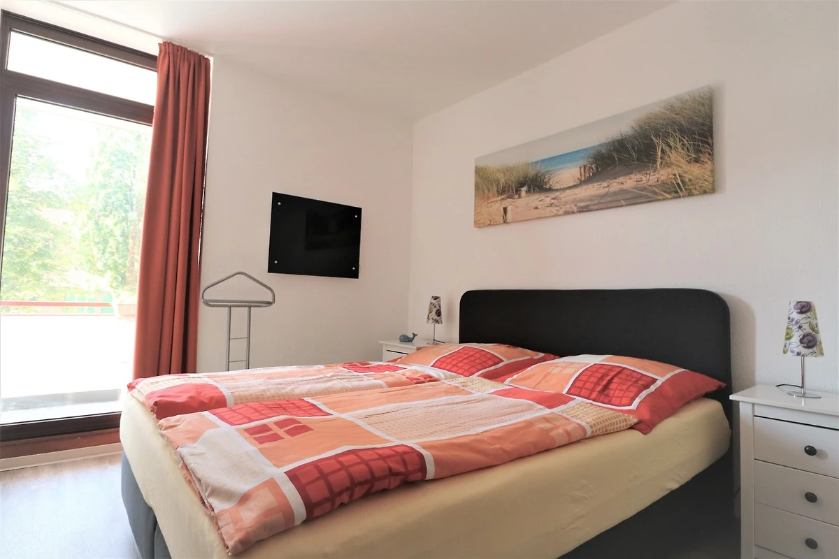 Das Schlafzimmer ist mit einem Boxspringbett (1,60 m x 2,00 m) ausgestattet und hat einen eigenen Zugang zum Balkon - Ausrichtung Südwest.
