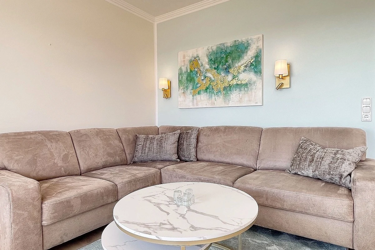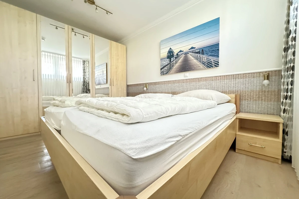 Die Apartments vom Typ A3S haben zwei Schlafzimmer, einen Wohnraum, Kochnische, Dusche, WC, Südbalkon und Seeblick. Mit einer Wohnfläche von 43 qm sind sie für bis zu 4 Personen geeignet.