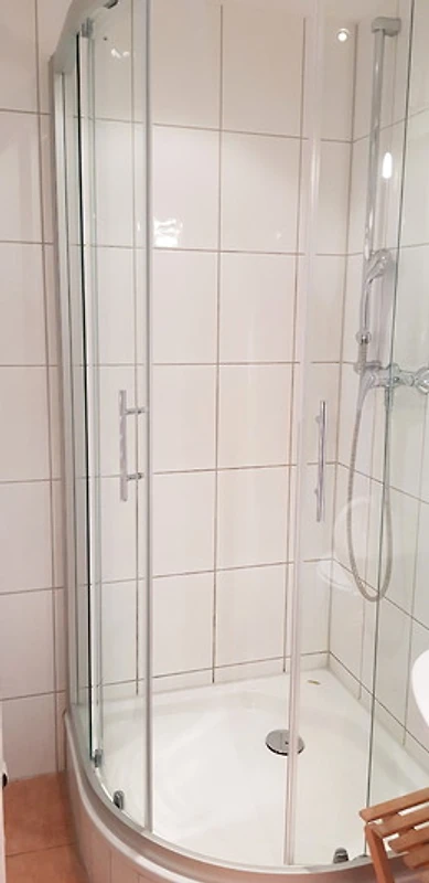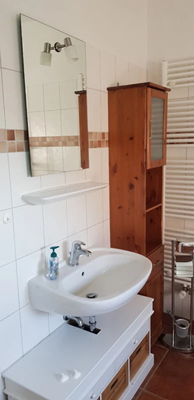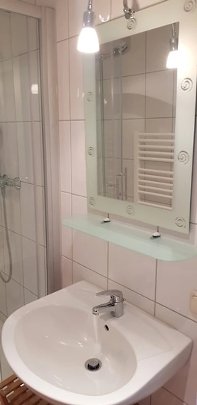 Das modern eingerichtete Bad verfügt über eine Dusche.