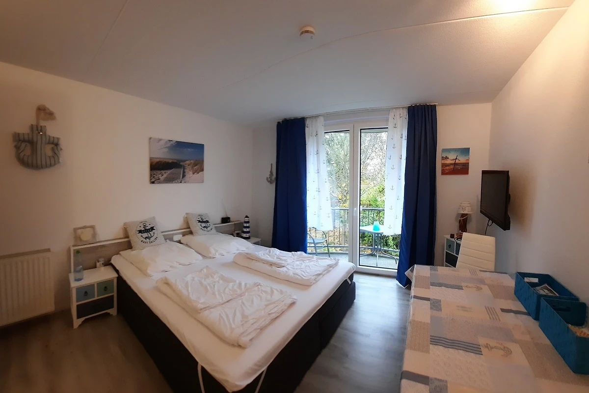Die Ferienwohnung, 1. Etage, liegt direkt zentral im Center Park. Das Appartement (Wohn/Schlafraum mit Doppelbett) hat 23qm, ist freundlich eingerichtet und verfügt über eine gute Ausstattung wie: Fernseher, Radio, Kinderhochstuhl, kleinem Essbereich, Küchenzeile (2 Herdplatten ohne Backofen) mit Kühlschrank, Kaffeemaschine, Toaster, Wasserkocher, Mikrowelle. Im Bad (Dusche/WC) ist ebenfalls ein Fön vorhanden. Der Balkon zur Gartenseite lädt zum Entspannen ein. In wenigen Gehminuten erreicht man den Strand, sowie diverse Restaurants und einem Bäcker. Bei Vorlage der Buchungsbestätigung erhalten unsere Gäste 50% Ermässigung auf den Eintrittspreis Aqua Mundo. Dieses Erlebnishallenbad ist in 2 Minuten Fussweg zu erreichen. Aktivitäten wie zum Beispiel Bowling, Minigolf und Billiard sind ebenfalls dort zu finden. Auch die Kinderanimation kommt hier nicht zu kurz. Spielplätze und Fahrradverleih sind ebenfalls direkt vor Ort.
